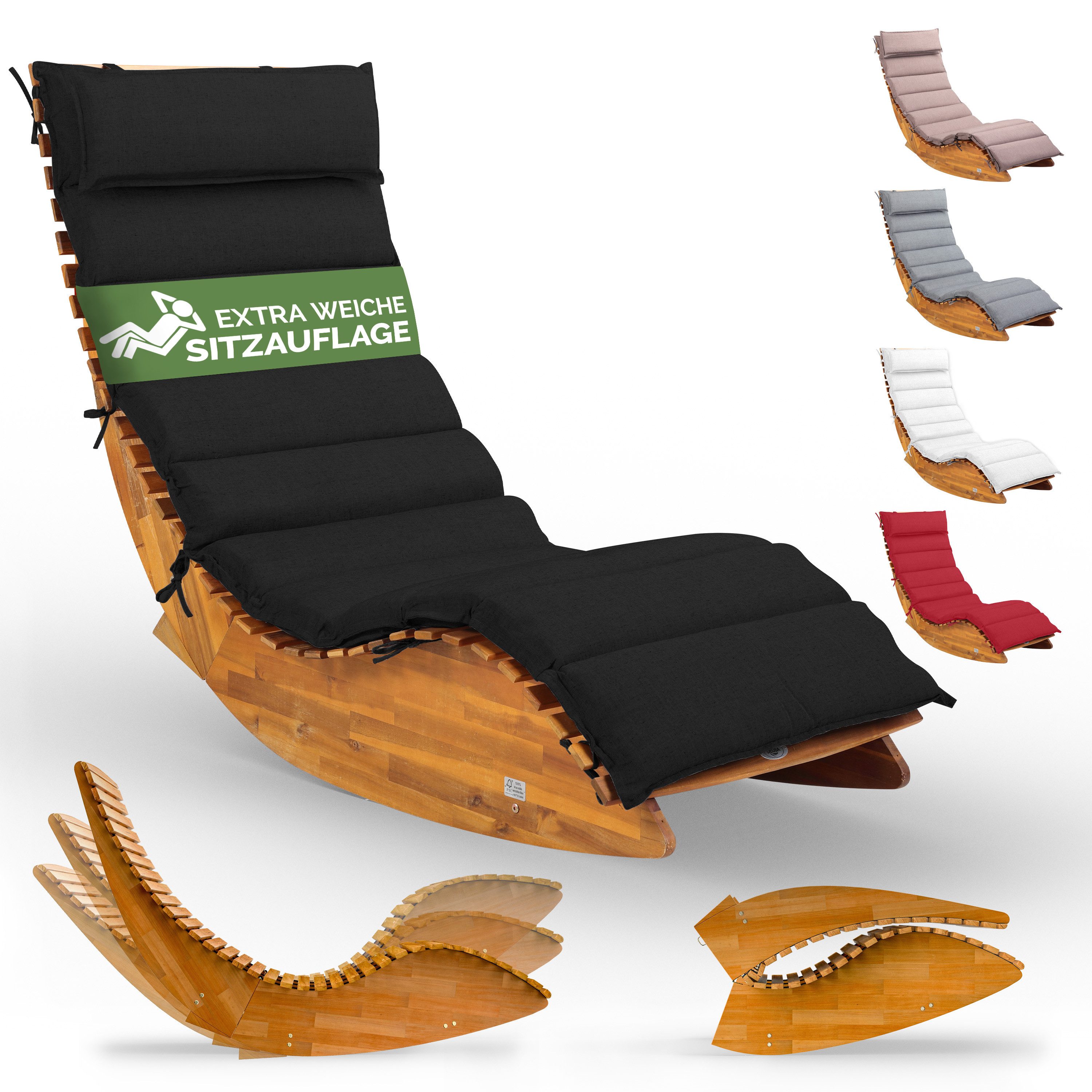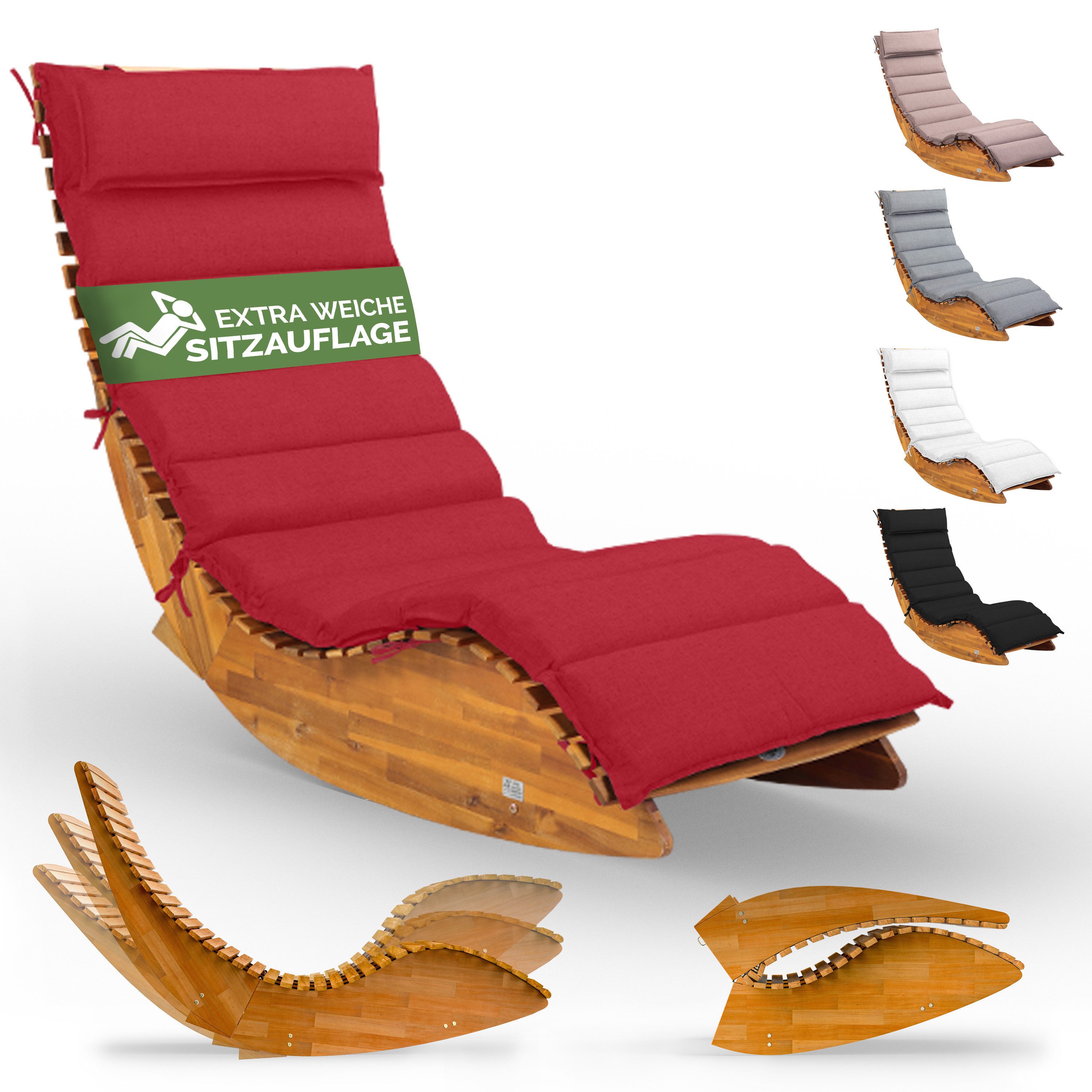 Die Liege besticht durch ihre ergonomische Form, die sich deinem Körper perfekt anpasst. Das sanfte Wippen verstärkt den Entspannungseffekt, während der Schaukelstopp für Sicherheit sorgt. Dank der klappbaren Funktion kannst du die Liege platzsparend verstauen
