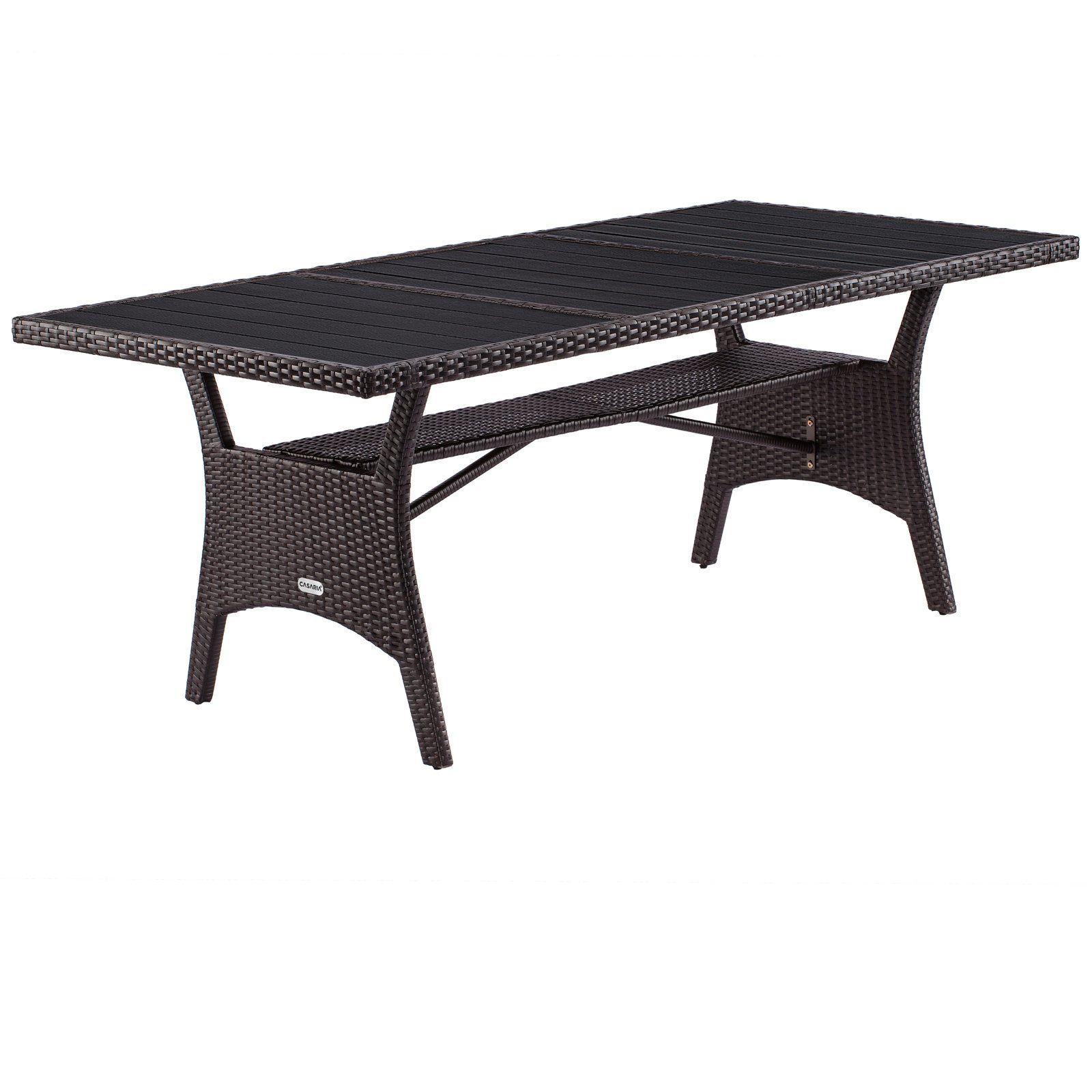 Der Polyrattan Gartentisch von CARARIA® verbindet Funktion und Design und bietet Platz für gesellige Runden bis zu 8 Personen im Garten, auf der Terrasse oder auf dem Balkon. Die WPC-Tischplatte in edler Holzoptik ist wie das UV-beständige Polyrattan-Geflecht wetterfest und pflegeleicht. Eine zweite Ablagefläche sorgt für zusätzlichen Stauraum und Ordnung.
