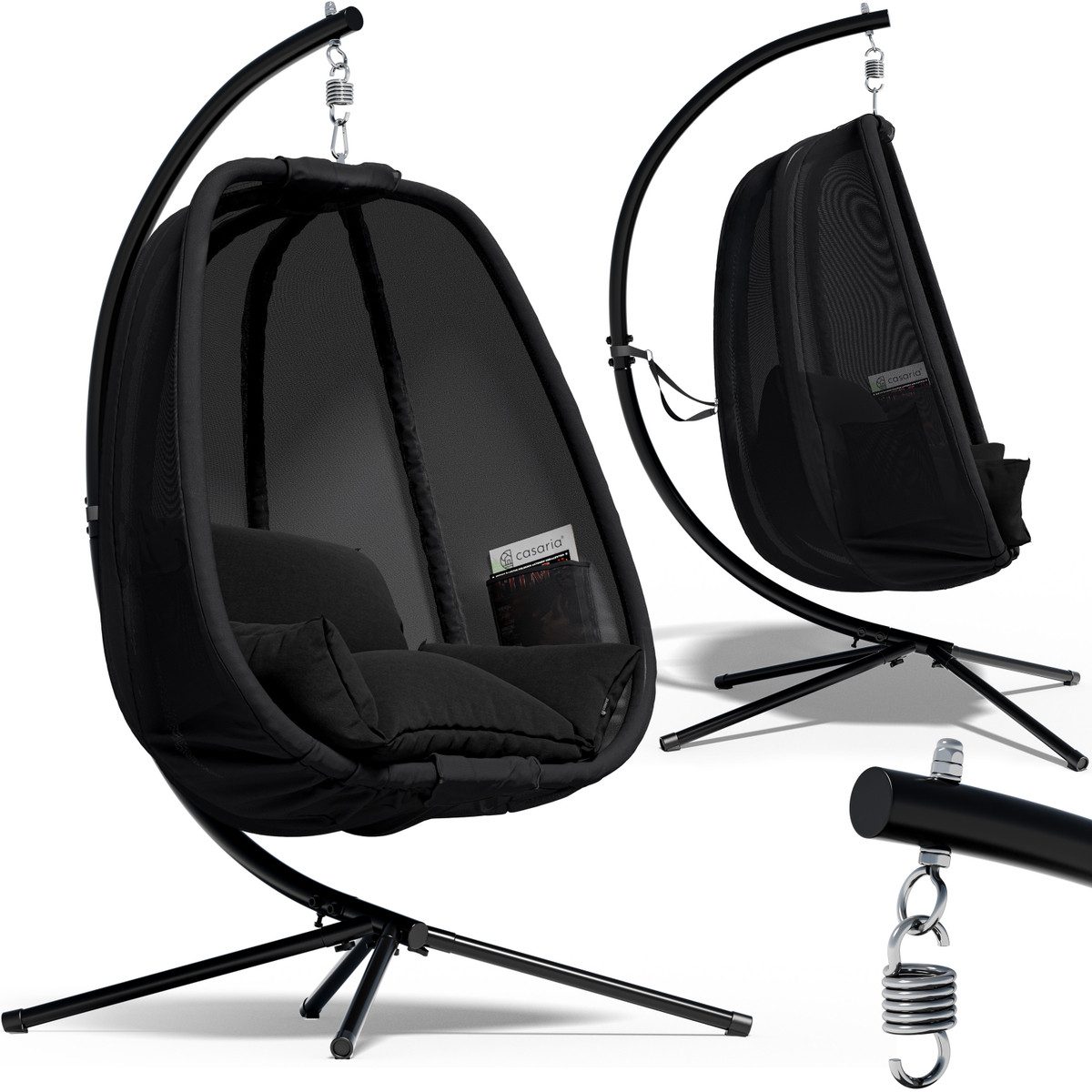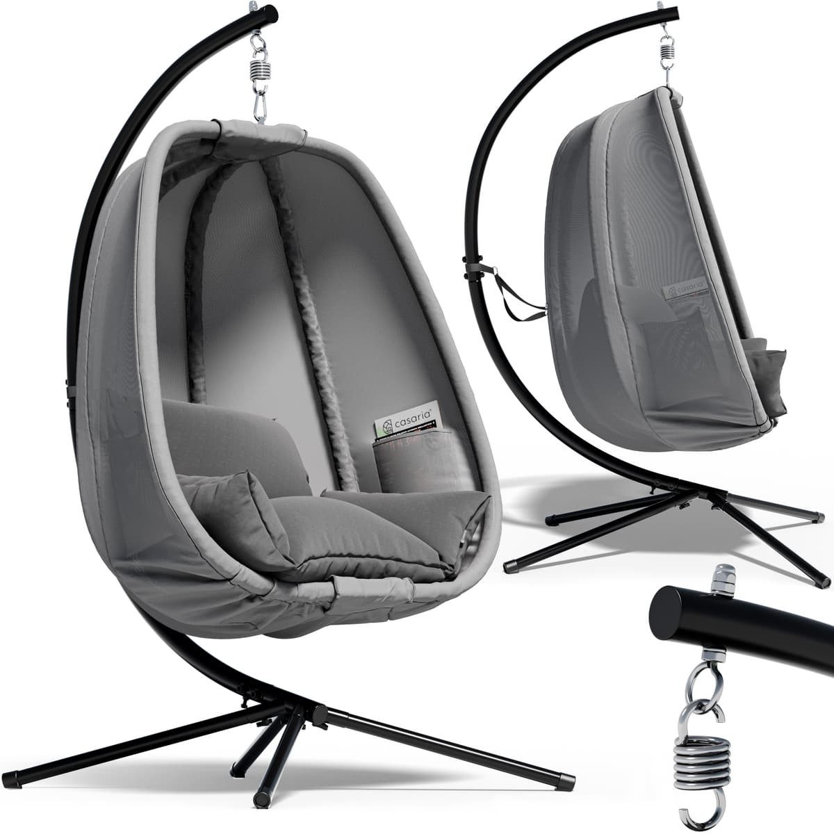 Mit dem stylischen Hängesessel mit Gestell von CASARIA® kannst du in deinem Wohnzimmer oder im Garten ganz entspannt deine Zeit genießen. Der gepolsterte Korbsessel schwebt sanft über dem Boden.