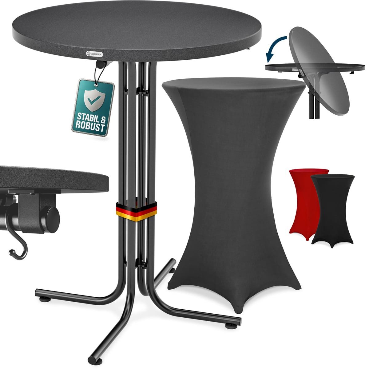 Ob für den festlichen Sektempfang, zur Gartenparty oder zur romantischen Hochzeit: der klappbare CASARIA® Stehtisch mit Husse macht auf jeder Feier eine gute Figur. Er ist 110 cm hoch und hat eine Tischplatte mit 70 cm Durchmesser.