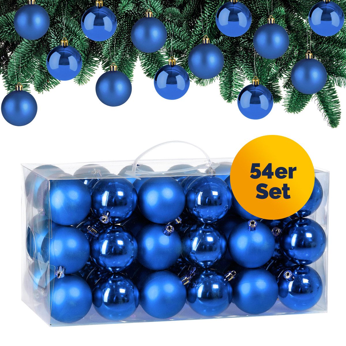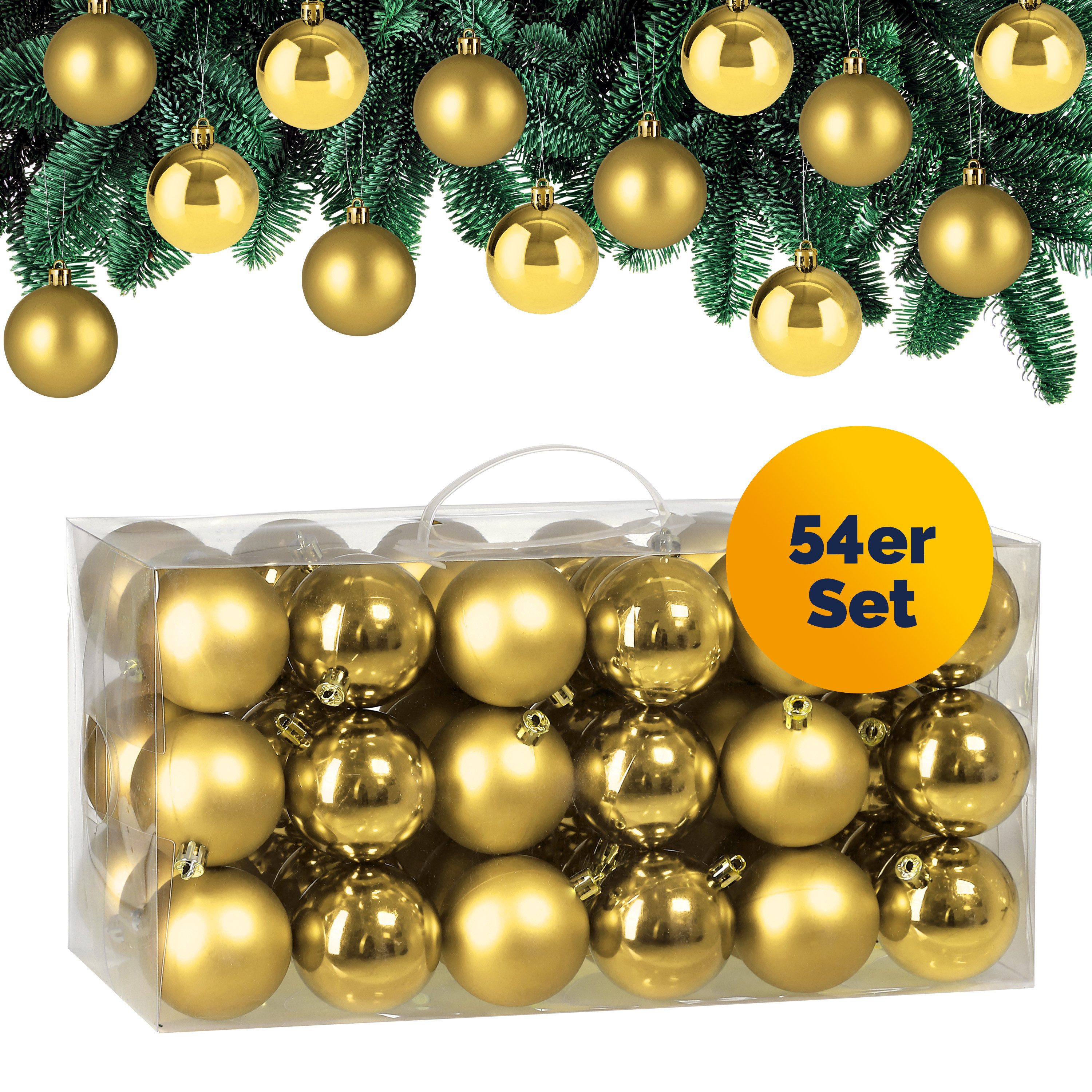 Mit dem 54-teiligen CASARIA® Weihnachtskugel-Set kannst du dein Zuhause in festlichem Glanz erstrahlen lassen. Die Christbaumkugeln mit einem Durchmesser von 6 cm reflektieren mit ihren glänzenden und matten Oberflächen auf zauberhafte Weise die Lichter deines Weihnachtsbaums.