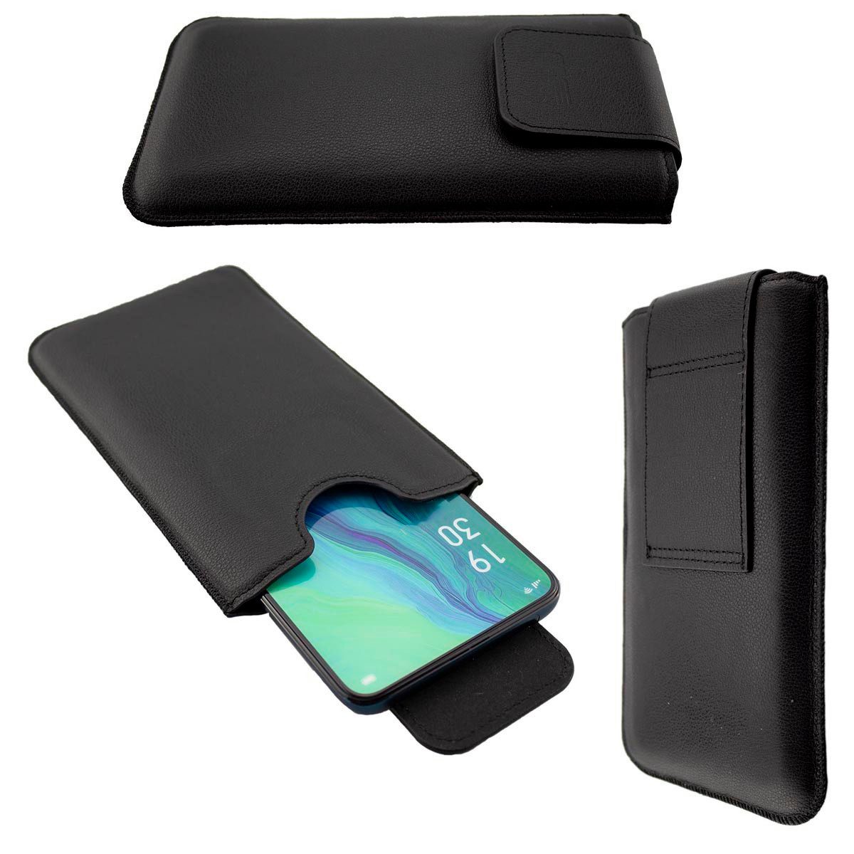 • Strapazierfähige und hochwertiges Etui für Geräte bis zu einer Размер von 165,5 x 78 x 10,5 mm mit Magnetverschluss und Einlass zum einfachen herausziehen des Telefons. Unaufgeregtes klassisches und hochwertiges Design in formschöner Verarbeitung