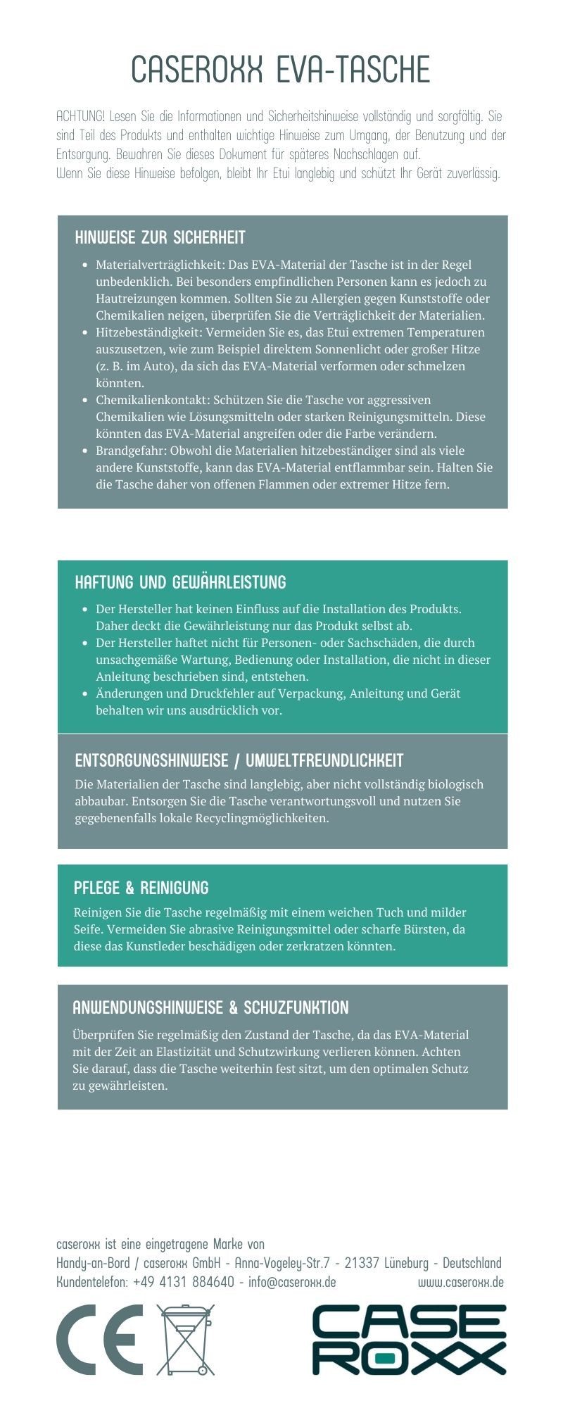 Die in Lüneburg ansässige Firma Handy-an-Bord mit ihrer Marke caseroxx steht für Zubehör produziert für Smartphones / Telefone / GPS Geräte sowie tolles Equipment für Kinderspielzeug, Diabetikerbedarf und mehr. Das Team von Handy-an-Bord ist stets auf der Suche nach neuen Produkten die das Leben vereinfachen und zum Schutz Ihres Eigentums beitragen.