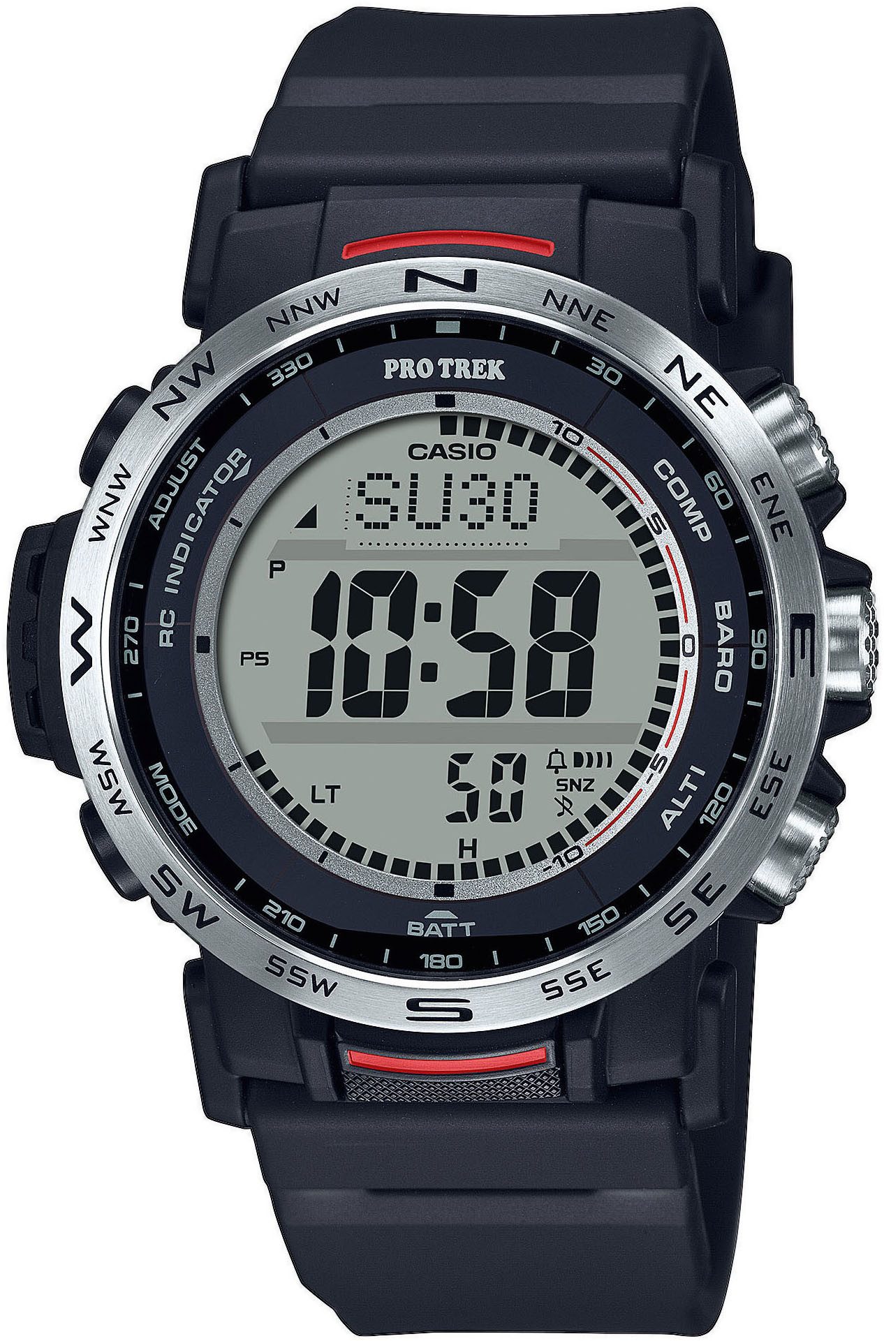 Zusatzfunktionen | 12/24-Std.-Anzeige, Beleuchtung, Ladekontrollanzeige, Timer, Weltzeit |