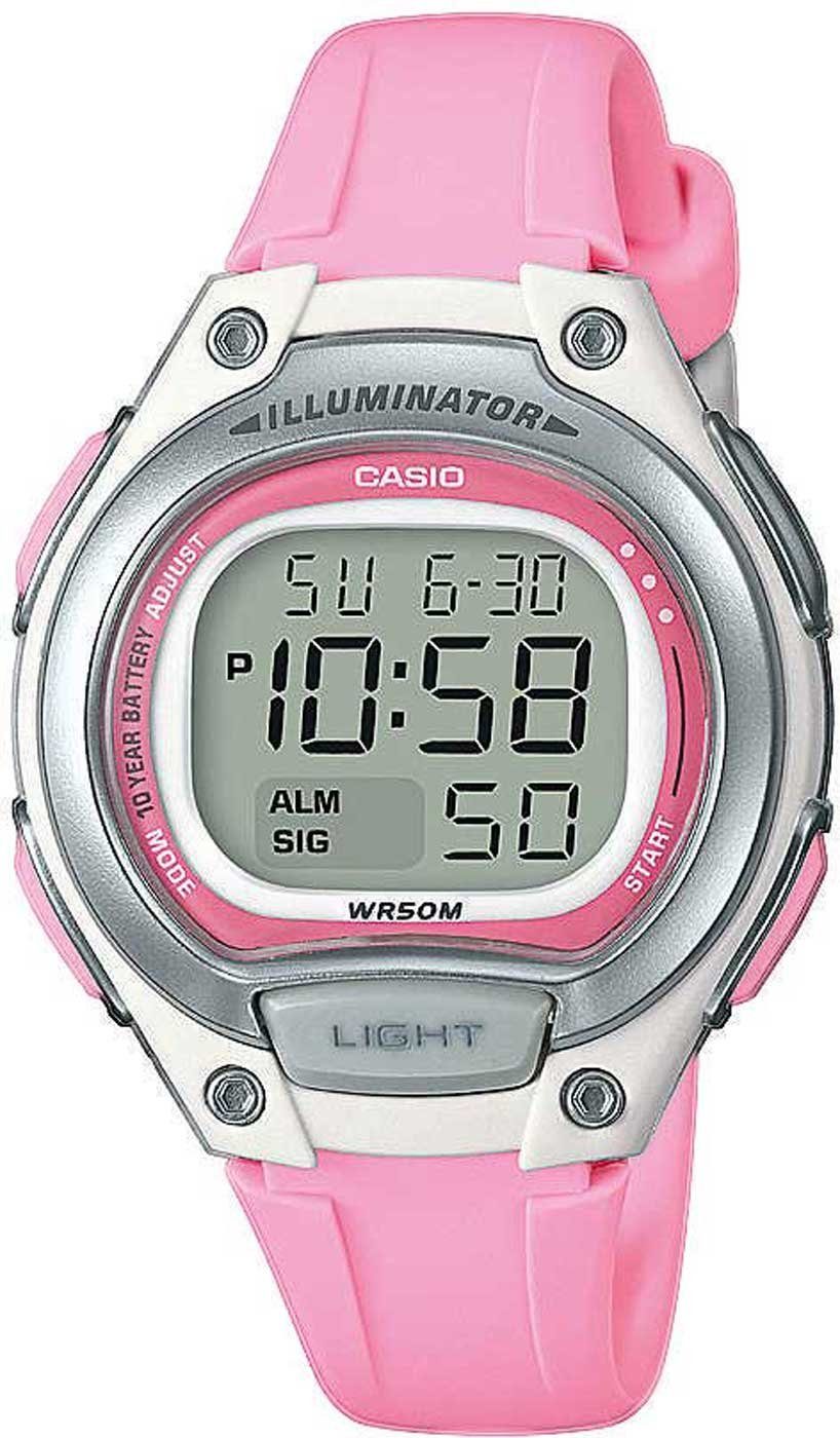 Das Modell ist mit einem Quarz Uhrwerk ausgestattet. Die Zifferblattfarbe ist Rosa/Pink. Dieses Modell hat Ziffern in Arabisch. Die Zeitanzeige ist Digital.