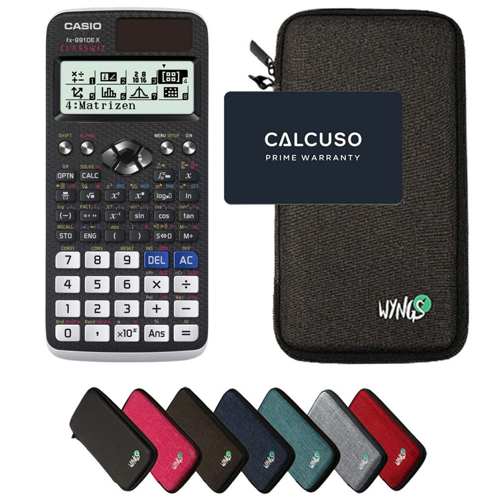 Das CALCUSO Sparpaket Schwarz bietet eine praxisgerechte Ausstattung für Schule, Studium und berufliche Anwendungen. Es umfasst den technisch-wissenschaftlichen Taschenrechner Casio FX-991DE X ClassWiz, eine passgenaue WYNGS Schutztasche sowie ein erweitertes Garantiepaket für eine zuverlässige Nutzung über fünf Jahre.