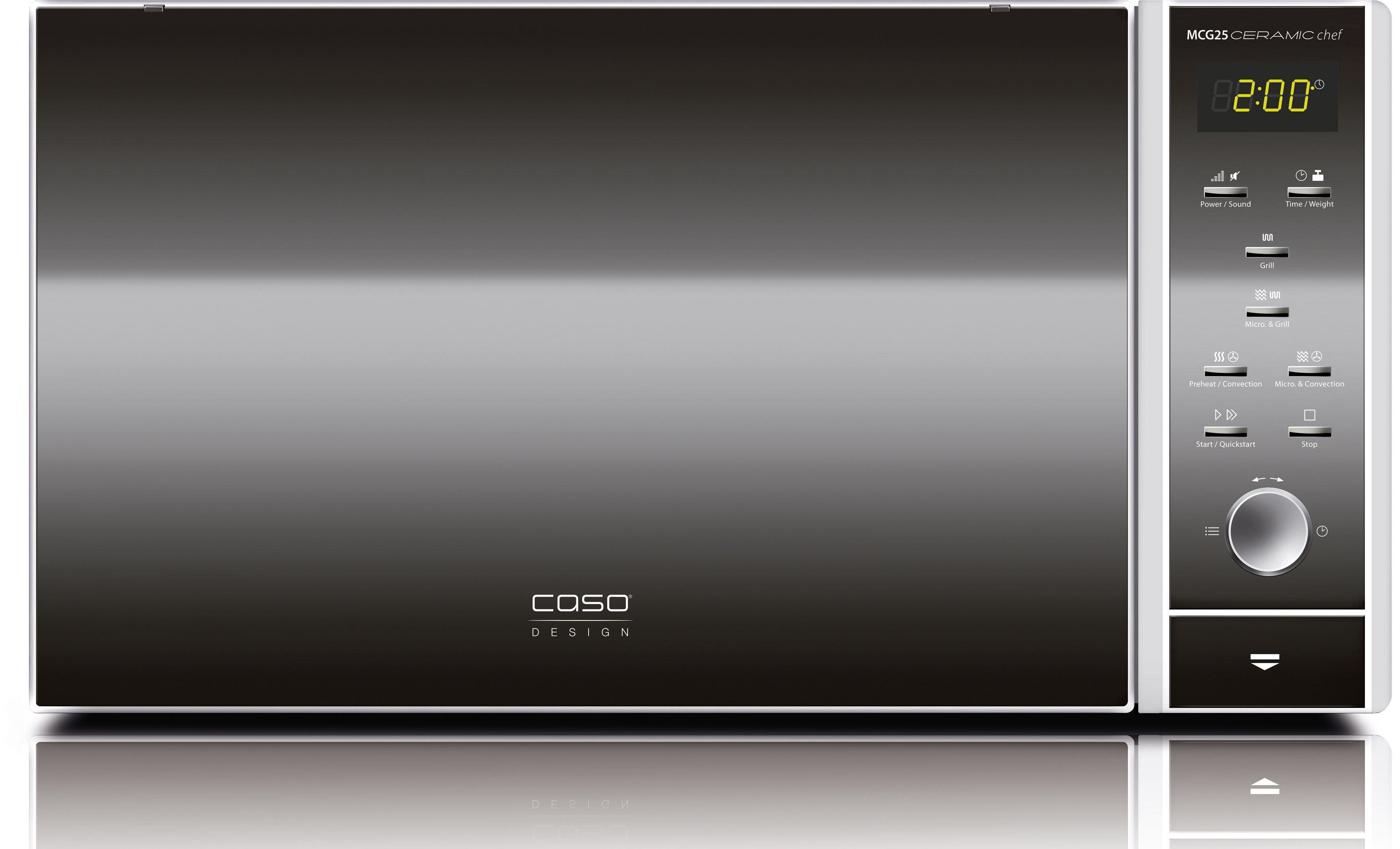 Впередe Vorteile | 6 Automatik-Programme (inkl. Auftaufunktion), 9 Kochprogramme 900 Watt Mikrowellenleistung, 1200 Watt Grillleistung, 2050 Watt Heißluft Backofenfunktion: Heißluft bis zu 200°C wie in einem richtigen Backofen Dank Keramikboden bis zu 60% mehr Nutzfläche. Auch eckige Formen finden Platz. Einfach Reinigung dank der CASO Clean Schutzlackierung |