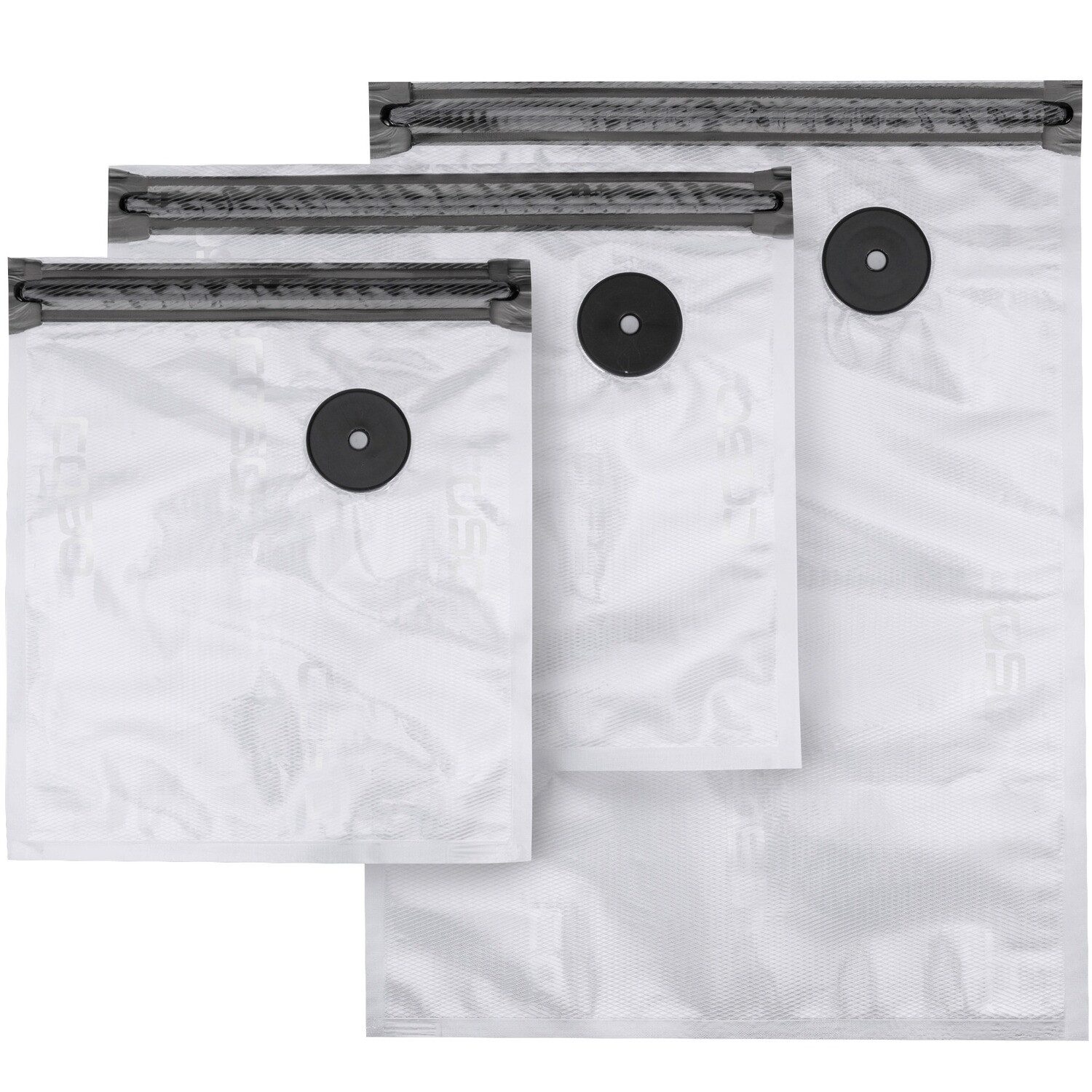 Im Set enthalten 10 ZIP-Beutel 20x23 cm, 6 ZIP-Beutel 26x23 cm, 4 ZIP-Beutel 26 x35 cm, Food Manager Sticker zur Organisation und Lagerung der Lebensmittel & 2 Vacu ZIP-Locker Ein unverzichtbarer Küchenhelfer für eine längere Frische Ihrer Lebensmittel Mit dem Vakuumbeutel Zip-Bags Set behält man Lebensmittel bis zu achtmal länger frisch. Dank einer Materialstärke von 150 μm, die besonders stark und reißfest ist, sorgt das Vacu ZIP-Bags Set für eine zuverlässige Lagerung, auch bei spitzen Inhalten wie Knochen oder Gräten. Die stabile Rippenstruktur gewährleistet eine 100 % Dichtigkeit und schützt somit optimal vor Gefrierbrand. Eine vielseitige Lösung für moderne Küchen Diese Vakuumbeutel sind nicht nur für die Lagerung im Kühlschrank oder Gefrierfach ideal, sondern auch mikrowellengeeignet und für das SousVide-Kochen bis 100 °C vorbereitet. Die wiederverwendbaren Beutel können einfach in der Spülmaschine gereinigt werden, was eine komfortable und praktische Handhabung im Alltag ermöglicht. Zusätzlich erleichtern die mitgelieferten Food Manager Sticker und 2 Vacu ZIP-Locker die Organisation und Lagerung im Haushalt. Somit stellt das Vakuumbeutel Zip-Bags Set eine umfassende Lösung dar, die den Küchenalltag bereichert und für eine effiziente Lebensmittelverwaltung sorgt. Впередe Produktdetails: Aus lebensmittelechtem, mehrschichtigem Material (PA/PE); Transparent; SousVide geeignet (kochfest bis 100°C für 8 Std); Mikrowellen geeignet (max. 70°C); Wiederverwendbar; Spülmaschienenfest; Materialstärke 150 µm; Rippenstruktur für 100 % Dichtigkeit; BPA-frei (ohne Weichmacher Bisphenol A)