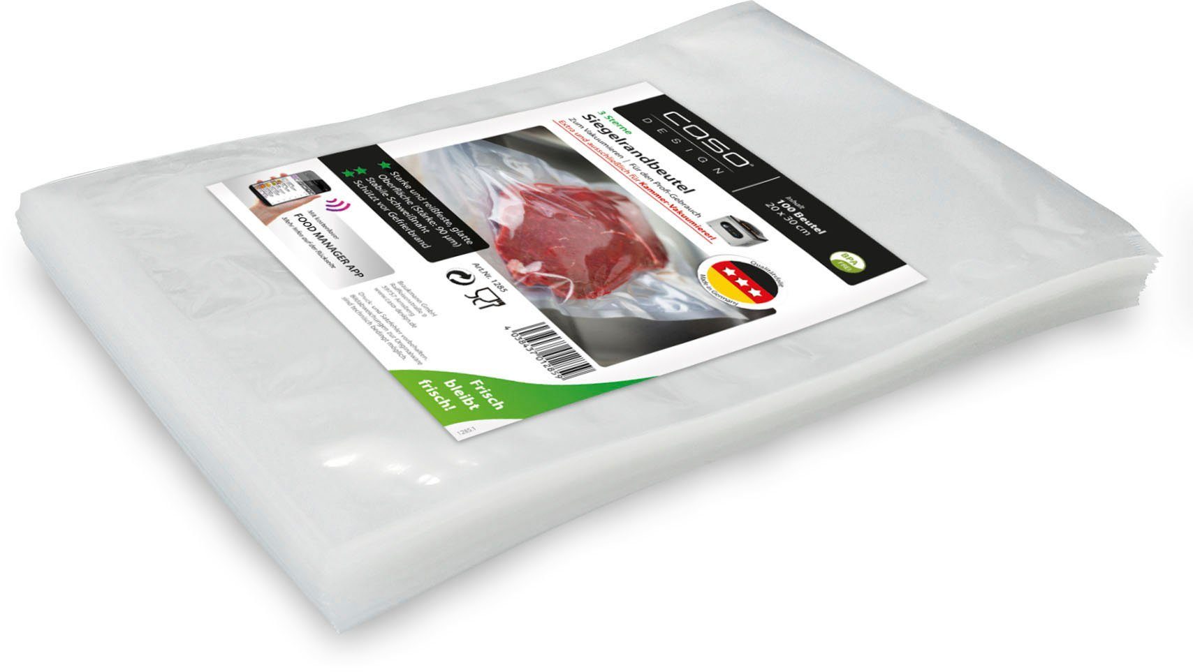 Впередe Vorteile | CASO Siegelrandbeutel sind stark & reißfest (Materialstärke: 90 µm). Besonders geeignet für die Lagerung in Kühl- und Gefrierschrank (optimaler Schutz vor Gefrierbrand), Glatte Oberfläche, stabile Schweißnaht, Hervorragend für das Sous Vide Garen geeignet ( bis 70°C für max. 2 Std.), Vakuumiert blieben Lebensmittel bis zu 8x länger frisch., Wiederverwendbar, Lebensmittelecht |