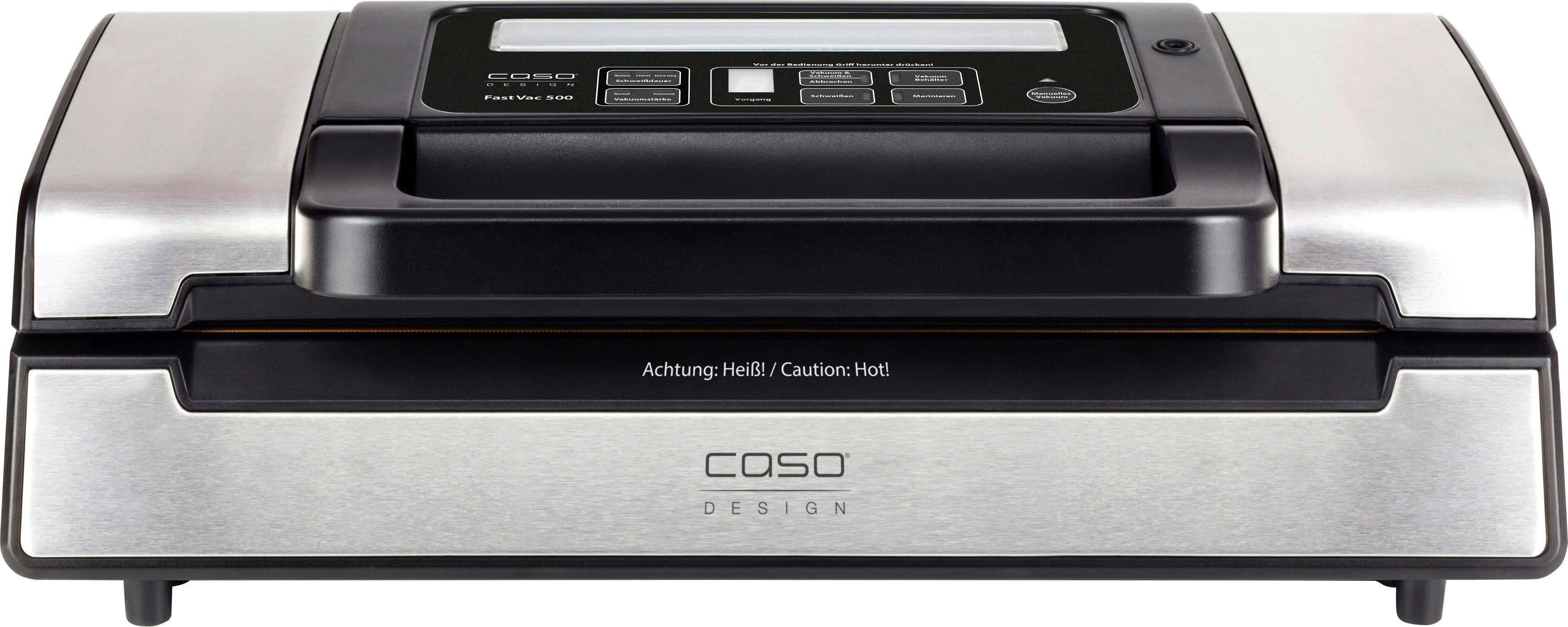 Впередe Vorteile | Patentierter Verschlussgriff für eine einfache und praktische Anwendung Prozessanzeige und Soft-Touch -Bedienung Pulse-Funktion, ermöglicht per Tastendruck den Vakuumvorgang manuell zu beenden Sichere Versiegelung mit doppelter Schweißnaht (Breite: 30 cm) gratis 2 Folienrollen zum sofortigen ausprobieren, Vakuumiervorgang |