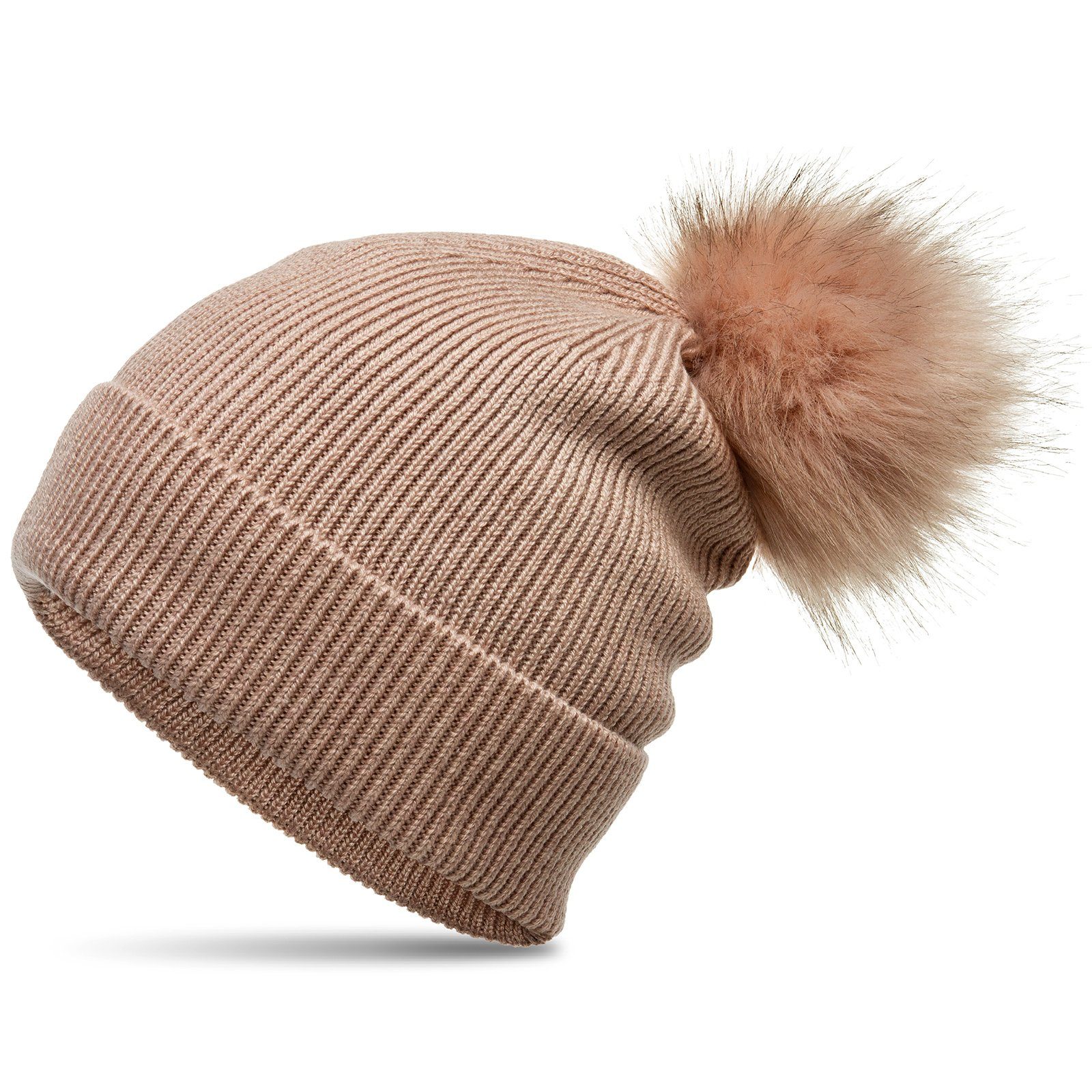 Unsere superschöne Strick Beanie Mütze mit Kunstfell-Bommel kombiniert zeitlosen Chic mit hohem Tragekomfort. Der elegante Rippenstrick verleiht ihr einen stilvollen Look, während das weiche Innenfutter aus feinem Fleece zuverlässig vor Wind und Kälte schützt.