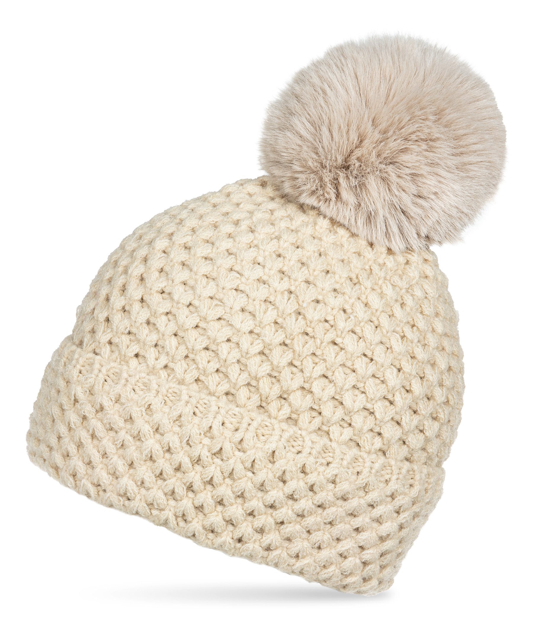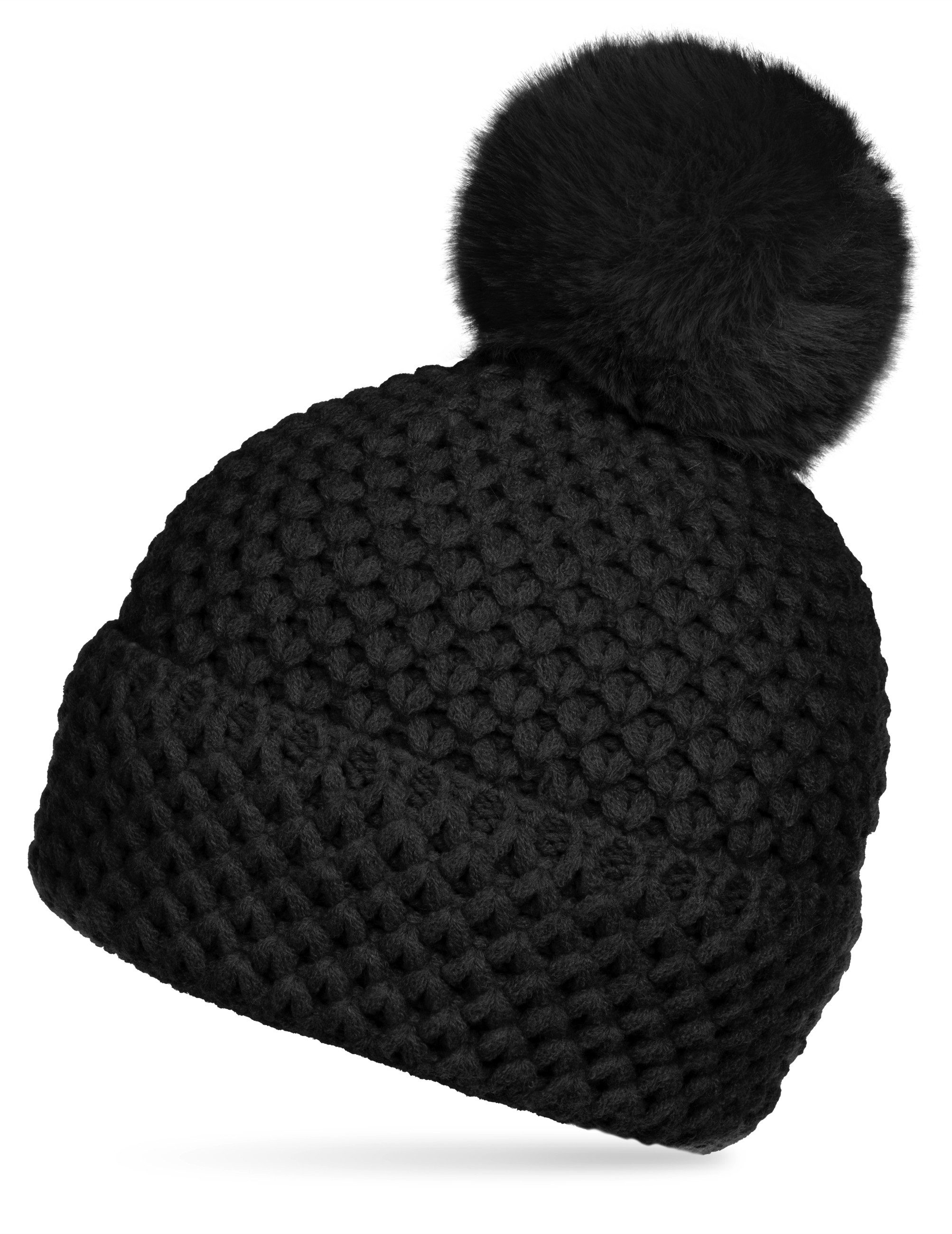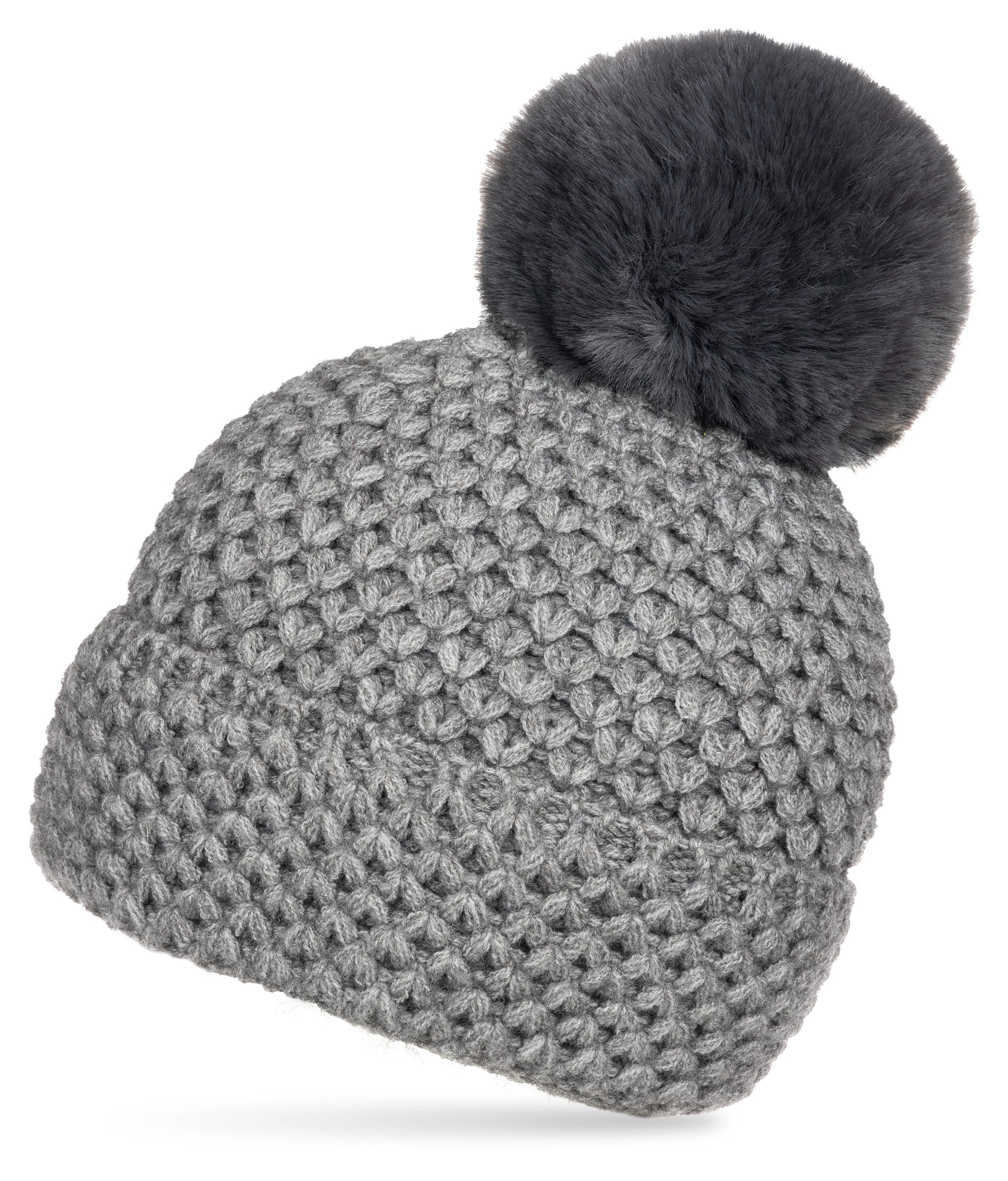 Diese wunderschöne, warme Damen-Strickmütze vereint zeitloses Design mit optimalem Tragekomfort. Das klassische Muster verleiht ihr eine stilvolle und zugleich lässige Optik. Der weiche, hochwertige Kunstfellbommel setzt einen dezenten, modischen Akzent und rundet das Design perfekt ab.