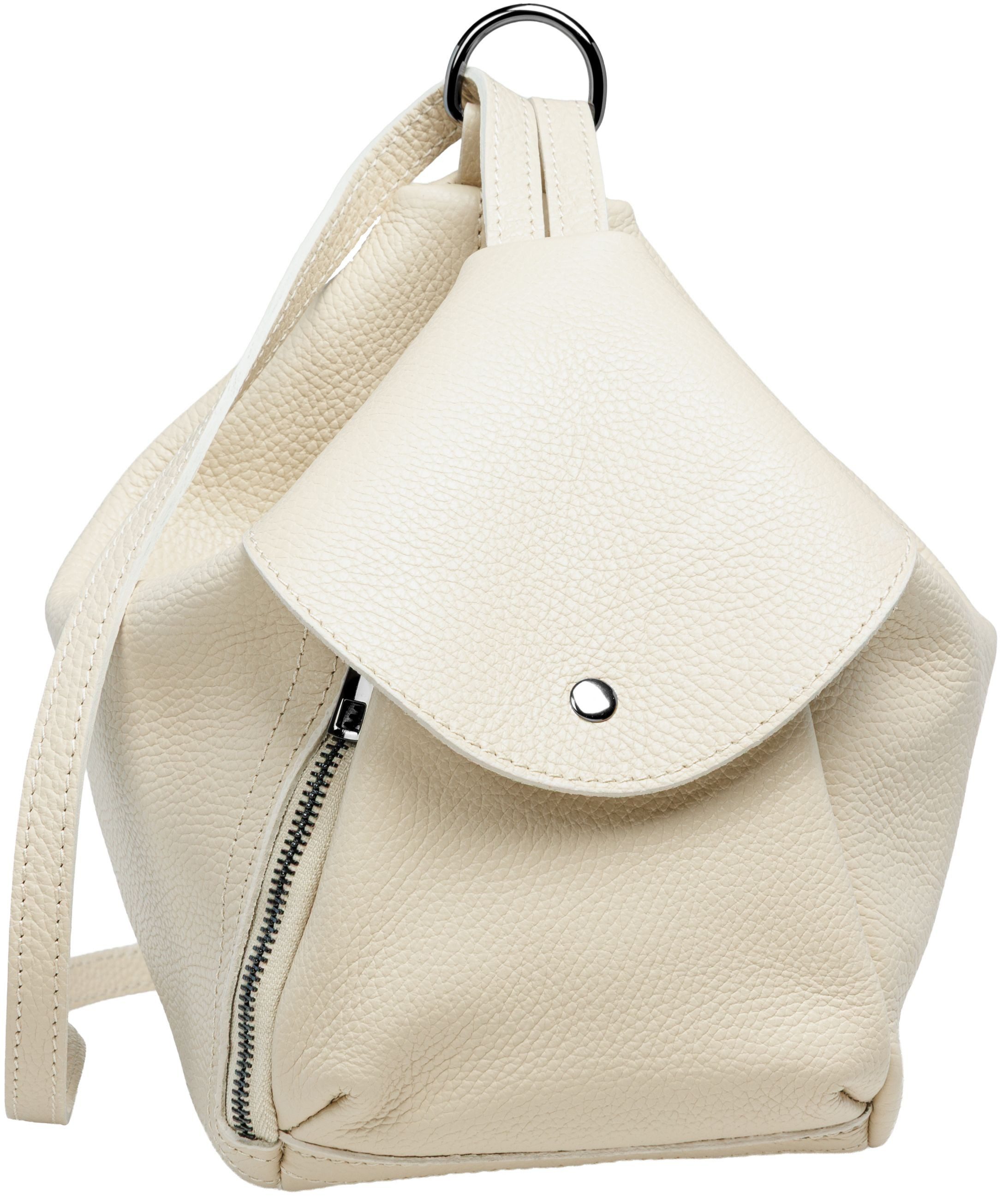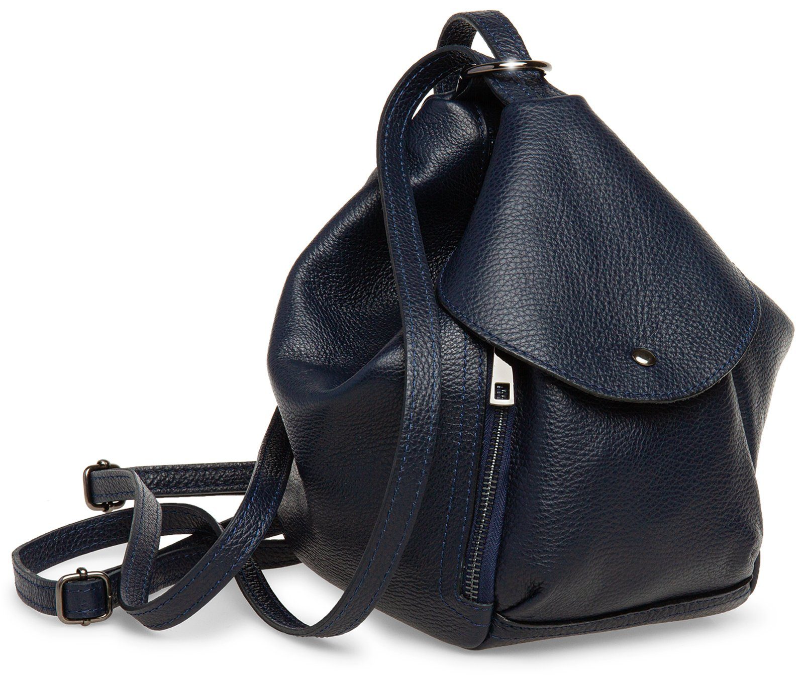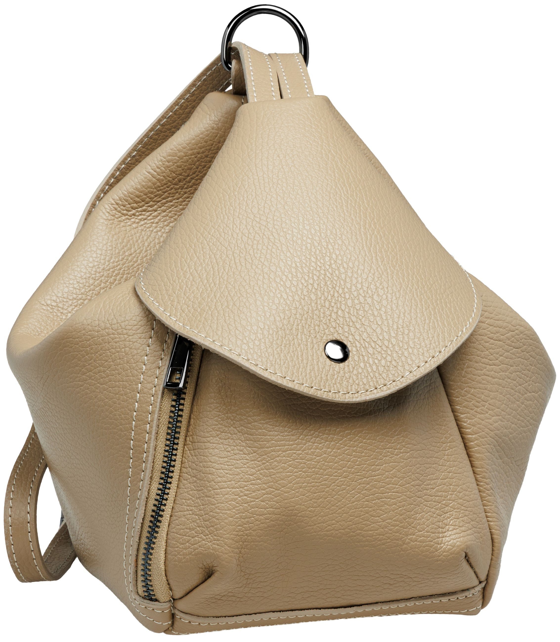 Formschöne 2 in 1 Rucksack Schultertasche aus robustem italienischem Rindsleder. Ausgefallener City Rucksack mit praktischer Doppelfunktion. Sie können ihn sowohl als kleinen Rucksack verwenden, als auch durch einfaches herausziehen der Schultergurte als praktische Schultertasche. Mit Hilfe der verstellbaren Gurte können Sie die Tasche optimal auf Ihre Körpergröße und Tragegewohnheiten einstellen. Im Innern befindet sich ein großes Hauptfach mit seitlichem, kleinem Sicherheitsfach mit Reißverschluss. An der Außenseite gibt es ein kleines, mit Druckknopf verschließbares Außenfach, sowie ein mit Metallreißverschluss schließbares Fach für Schlüssel, Geldbeutel, etc. Die in Italien gefertigte Rucksacktasche besteht aus Regen- und Kratzunempfindlichem, genarbten Rindsleder. Sie hat eine praktische mittlere Размер und ist somit perfekt geeignet als Begleiterin für jeden Tag oder auch ideal für die Reise. Material: Rindsleder, Размер ca. L X T x H ca. 23 x 16 x 24 cm.