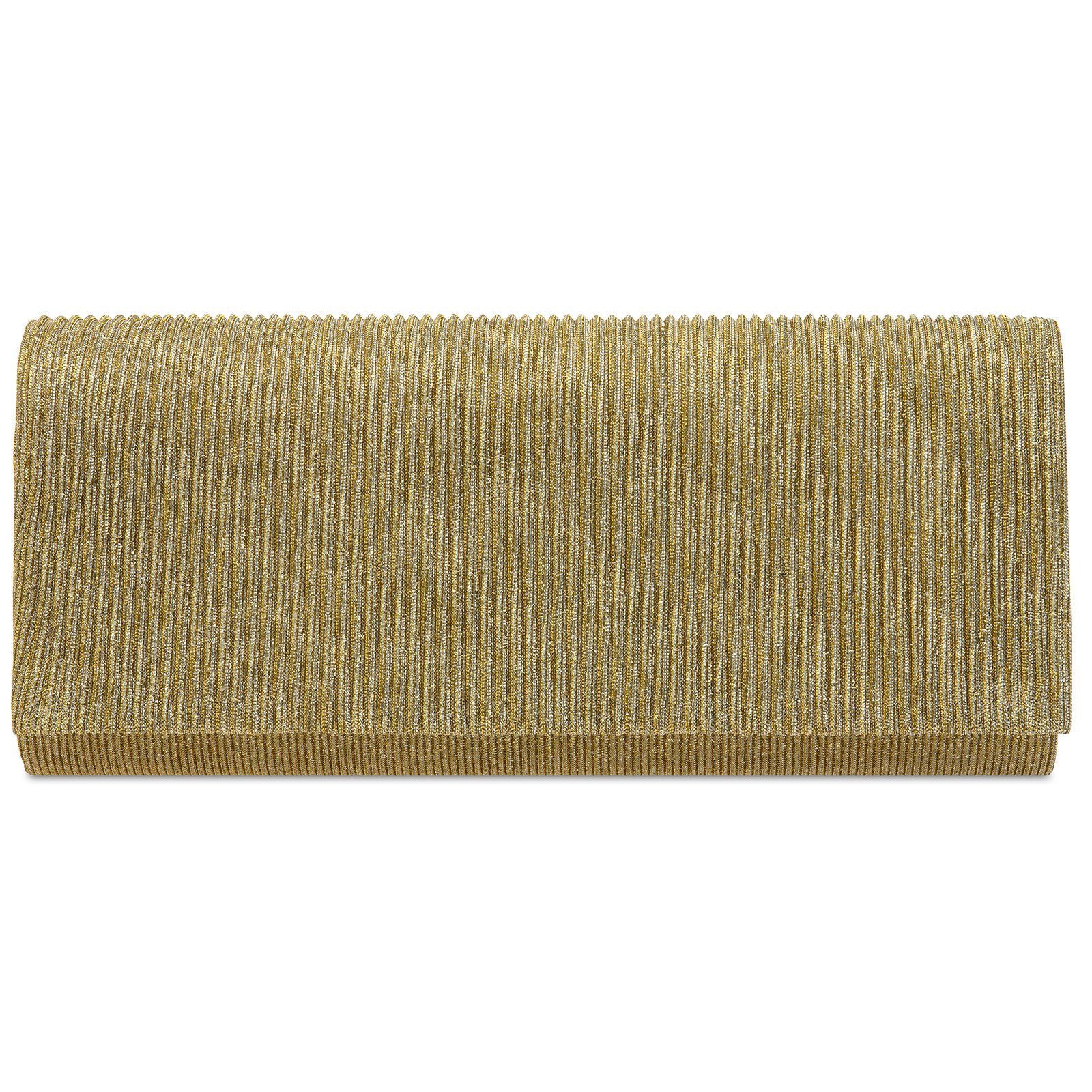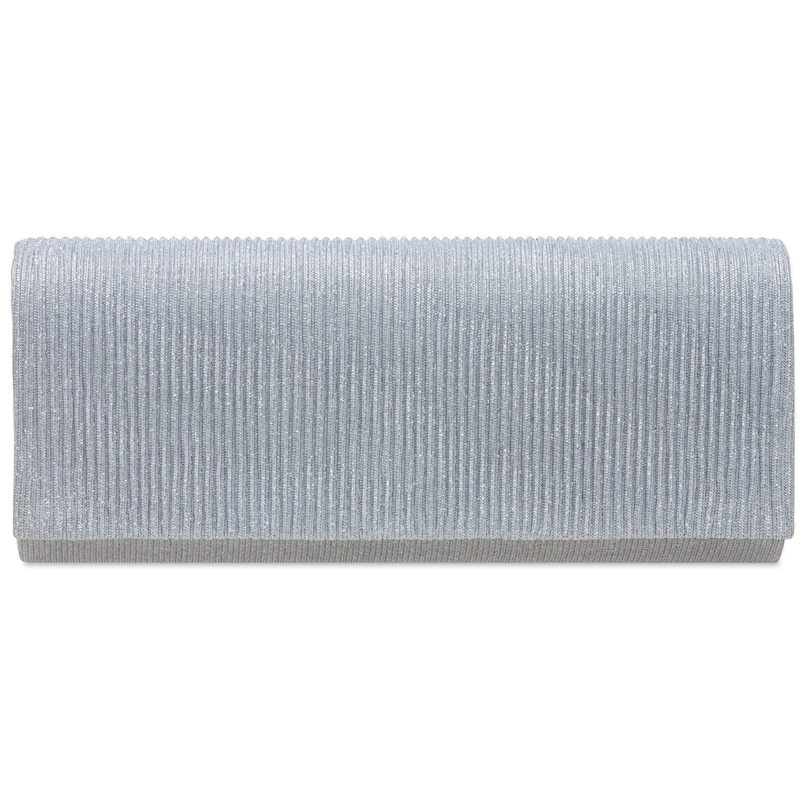 Elegante Glitzer Clutch mit Magnetverschluss. Diese klassische Abendtasche aus funkelndem, mit vertikalen Rillen strukturiertem Stoff ist die perfekte Begleiterin für Ihren stilvollen Auftritt. Sie können die Tasche als Clutch unter dem Arm tragen oder mit der langen Zusatzkette auch quer über der Schulter als kleine Umhängetasche. Im Inneren befindet sich ein kleines Zusatzfach. Durch ihre zurückhaltende Form und dennoch besonderes Glitzer Design lässt sich diese Tasche zu einer Vielzahl von Anlässen tragen und zu den unterschiedlichsten Outfits super kombinieren! Maße: Длина ca. 25,5 cm, Höhe ca. 11 cm, Breite (am Boden) ca. 6 cm. Caspar Fashion.