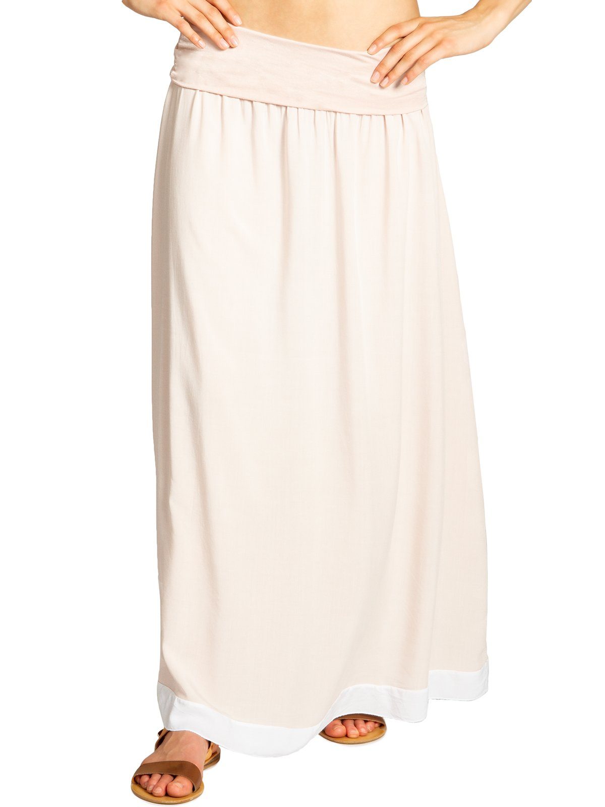 Super leichter, weicher und langer Damen Sommerrock. Der aus angenehmer zu tragender Viskose hergestellte Faltenrock ist der ideale Begleiter durch den Sommer. Mit seinem klassischen und dennoch eleganten Style lässt sich der Rock perfekt kombinieren. Das besondere Etwas erhält dieser Maxirock durch einen farblich abgesetzten Streifen am unteren Saum. Der Rock ist trotz des leichten Materials nahezu blickdicht. Ein ca. 7 cm hoher, doppelter Stretch Bund passt sich ideal Ihrer Figur an und kaschiert geschickt kleine Problemzonen. Material: 100% Viskose. Pflegehinweis: Maschinenwäsche bei 30 Grad. Caspar - Made in Italy.