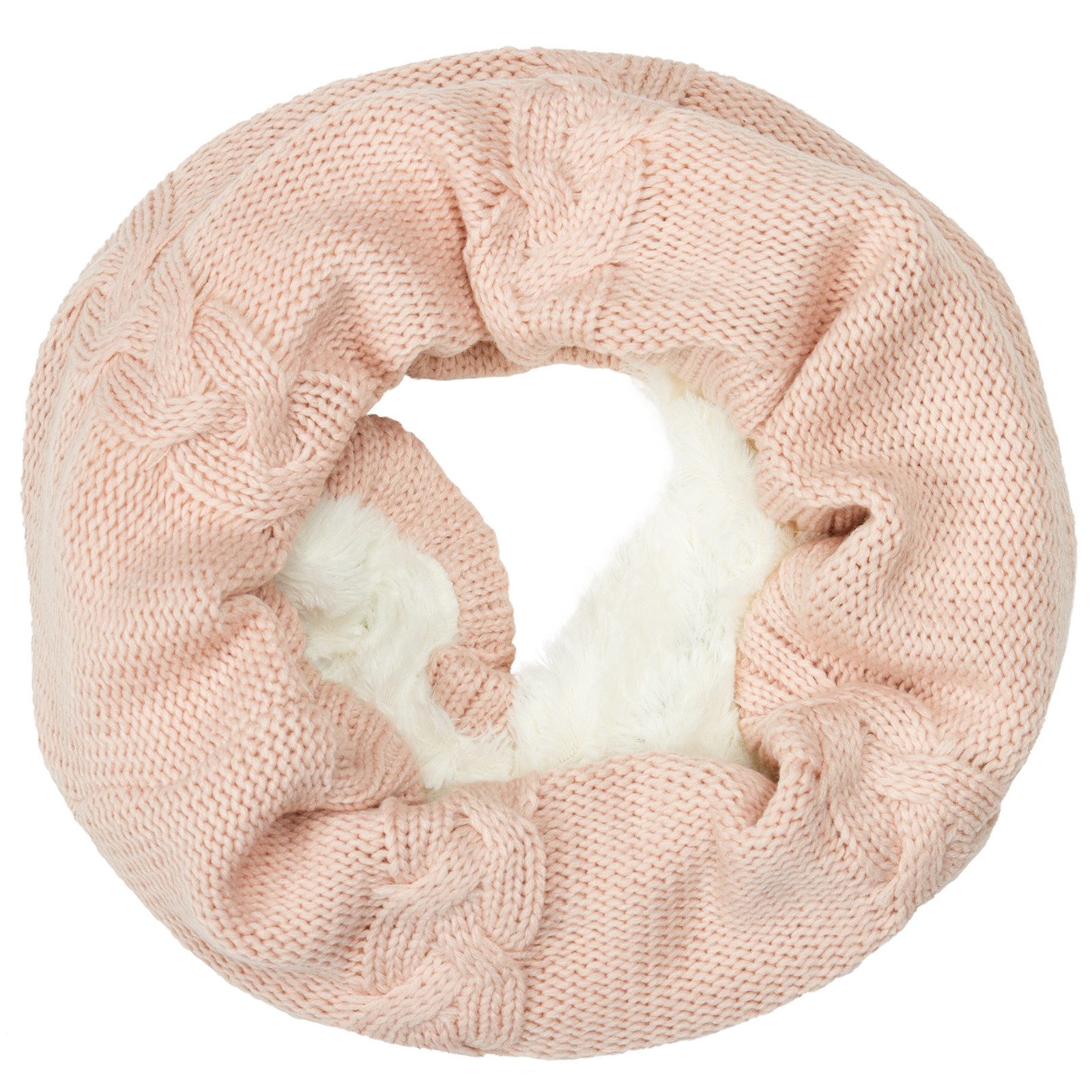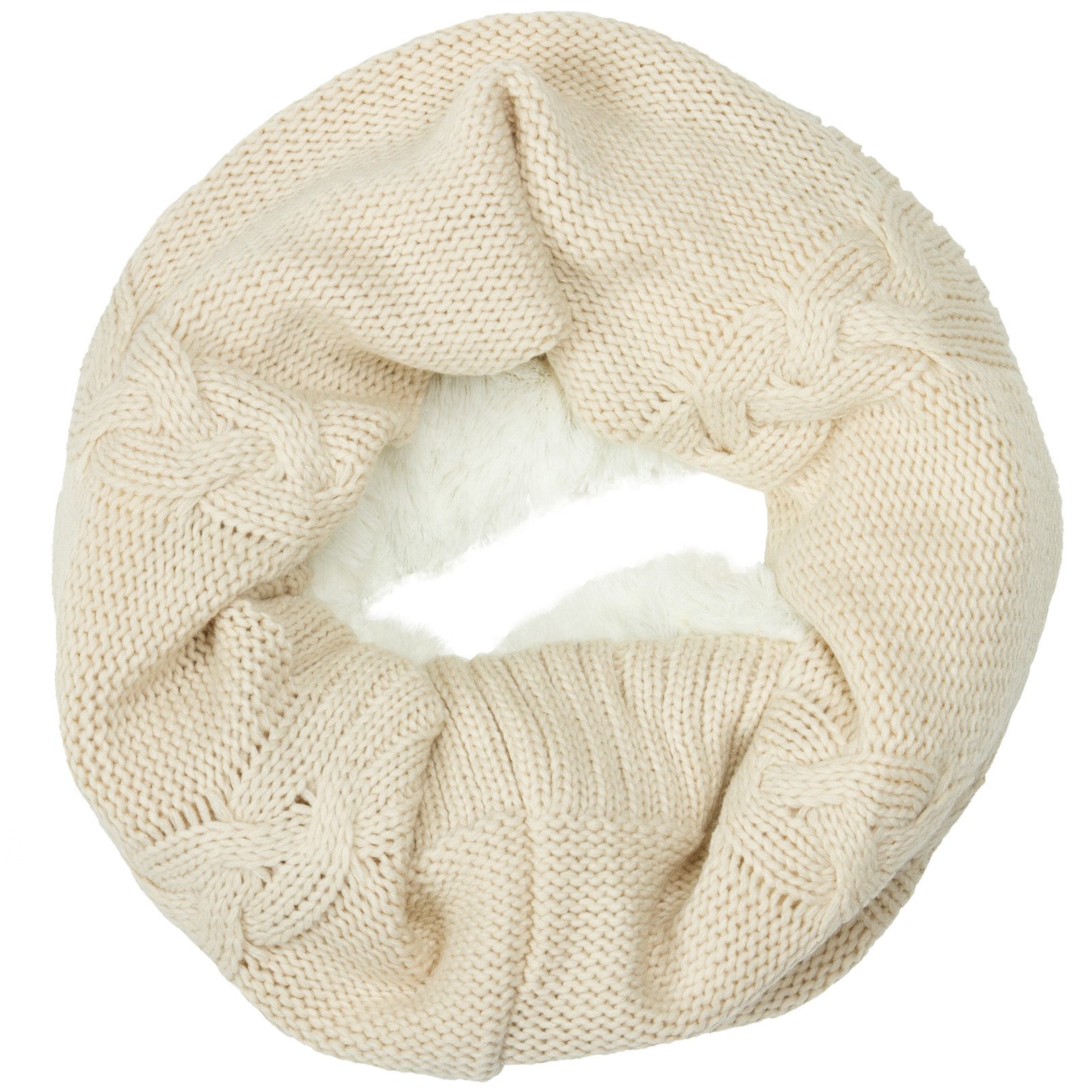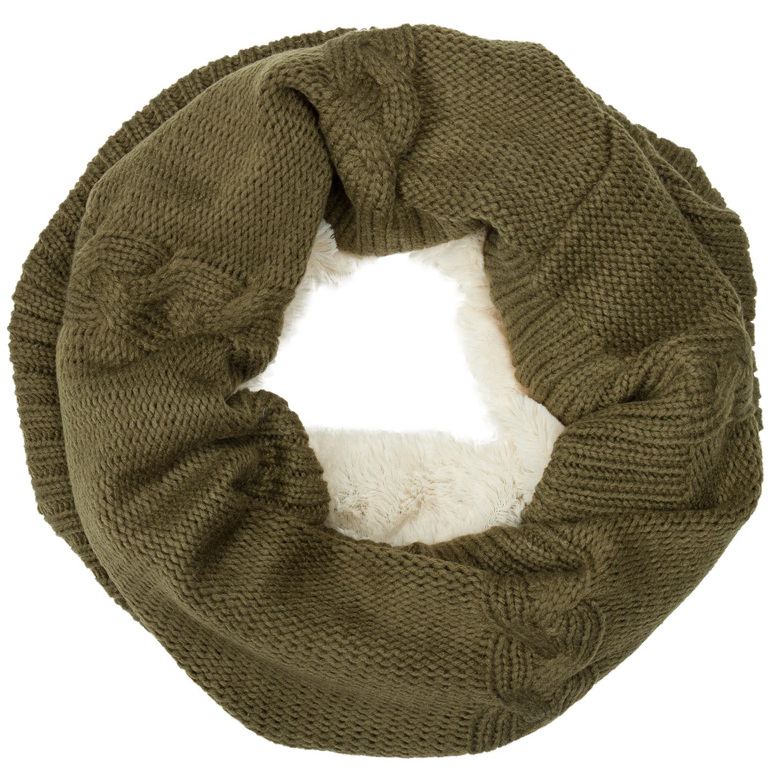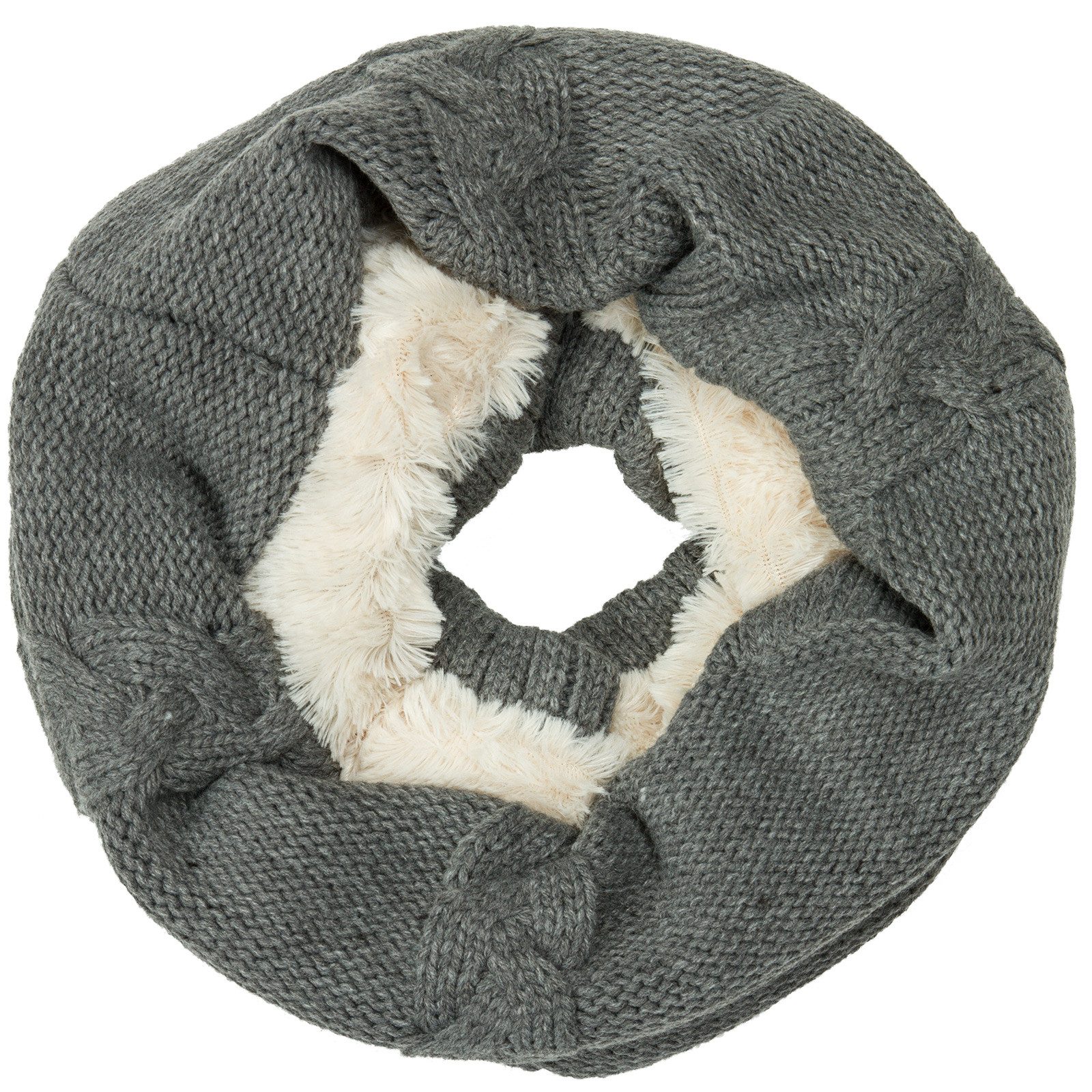 Kuschelig weicher Damen Loop Schal - das perfekte Winter-Accessoire alle, die Wärme und Komfort lieben. Außen in aufwendig gestricktem Zopfmuster und innen mit flauschigem Futter versehen, bietet dieser Rundschal angenehme Wärme an kalten Tagen und ein besonders sanftes Tragegefühl. Der praktische Schlauchschal lässt sich mühelos über den Kopf ziehen und sitzt ideal am Hals - ohne Knoten, ohne Verrutschen. Ob beim Stadtbummel, auf dem Weg zur Arbeit oder beim Winterspaziergang - dieser Loopschal kombiniert klassische Optik mit funktionaler Wärme. Mit einer Длина von ca. 80 cm und einer Breite von ca. 35 cm passt er bequem unter jede Jacke oder jeden Mantel. Material: 100 % Polyacryl.