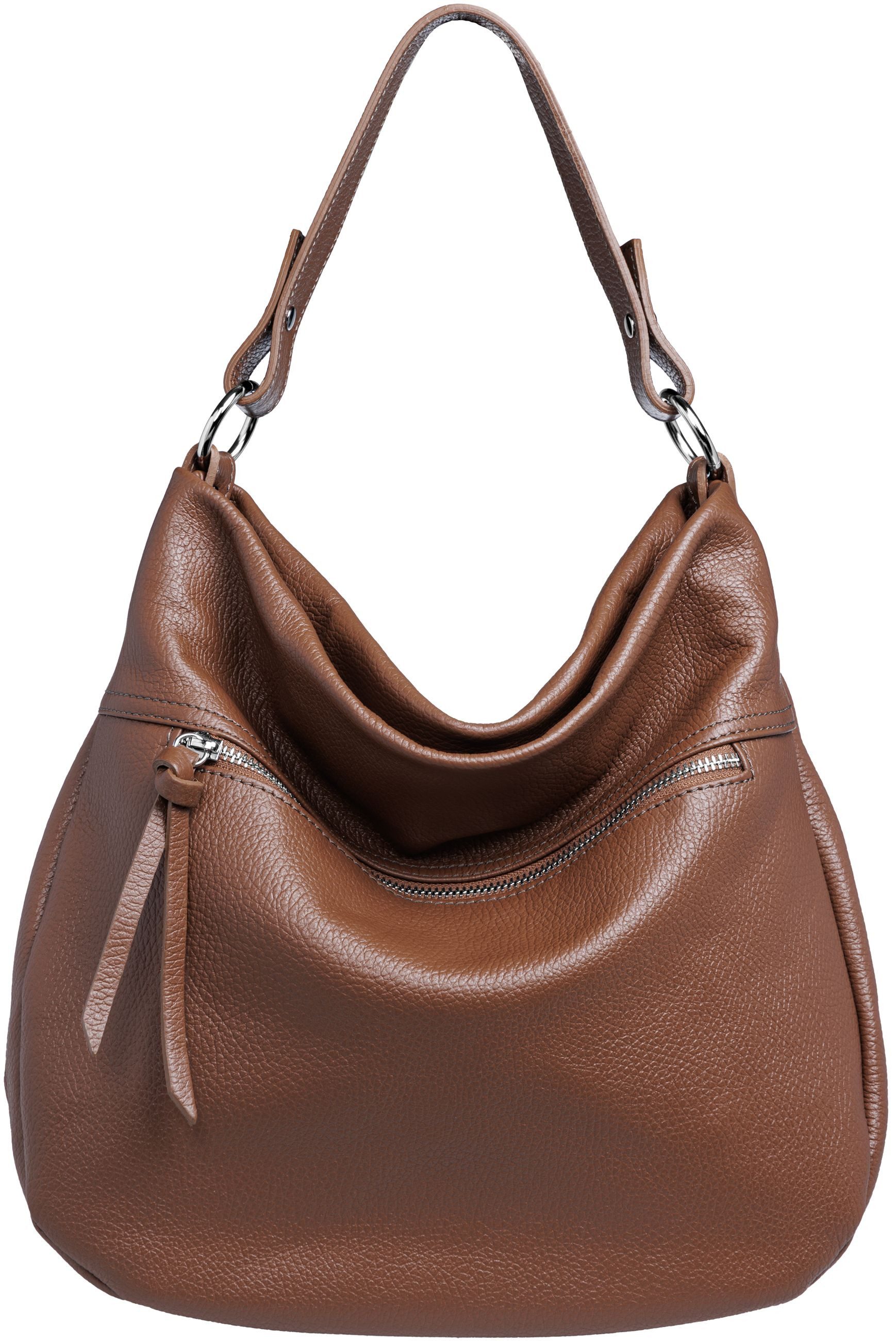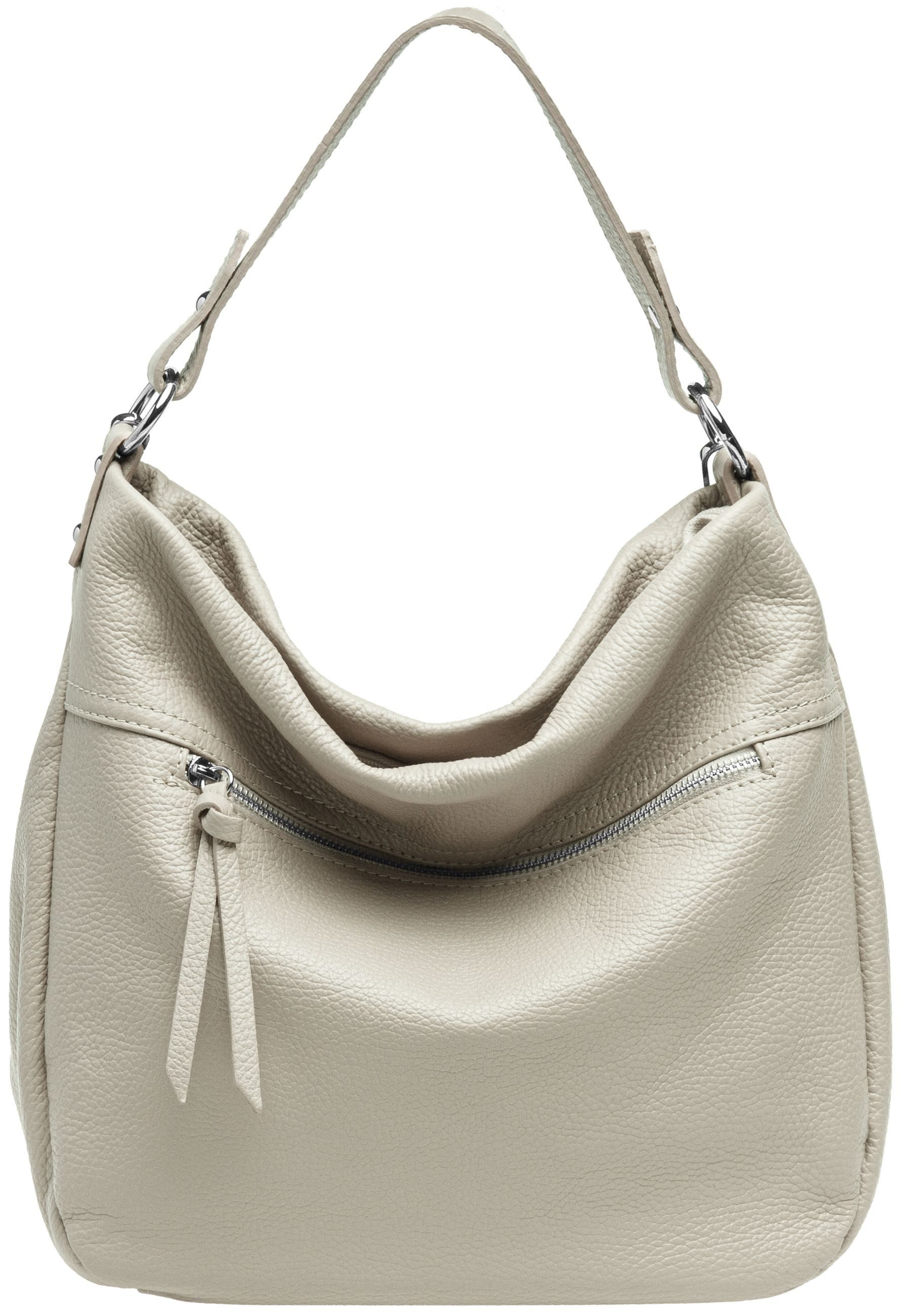 Klassisch sportliche, formschöne Leder Schultertasche / Mini Shopper perfekt für den täglichen Gebrauch. Wenn Sie eine sportiliche, hochwertige Tasche suchen in die viel hinein passt, mit strukturgebenden Innenfächern für eine gute Organisation und die dabei gleichzeitig nicht zu groß ist sind Sie bei dieser wundervollen Schultertasche aus echtem Leder genau richtig. Mit zwei großen Hauptfächern, getrennt durch ein mit Reißverschluss schließbares Zwischenfach, einem kleinen Seiten Sicherheitsfach und einem Fach für Ihr Smartphone haben Sie eine sehr gute Kombination aus Übersichtlichkeit und Praktikabilität. Die Schultertasche wird mit Hilfe des fest angebrachten, ca. 25 mm breiten und weichen Schulterriemens bequem über der Schulter getragen. Mit Hilfe des beiliegenden längenverstellbaren Leder-Schultergurtes lässt sich die Tasche auch bequem über der Schulter als Schuktertasche tragen oder auch quer über der Schulter als Crossbody-Bag. Das besondere Etwas erhält die Tasche durch den an der Vorderseite angebrachten, silberfarbenen Reißverschluss mit Lederzipper, welcher das außenliegende Sicherheitsfach verschließt. Auf der Rückseite befindet sich ebenfalls ein verschließbares Sicherheitsfach. Nicht nur optisch ein echtes Multitalent, ideal als zuverlässige Begleiterin für jeden Tag. Die Ledertasche wird in einer kleinen italienischen Ledermanufaktur von Hand gefertigt und besteht aus robustem, genarbtem Rindsleder, das auch recht unempfindlich gegen Wasser ist. Maße L x B x H ca. 40 x 13 x 32 cm. Gewicht ca. 810 g. Material: Rindsleder. Caspar - hergestellt in Italien.