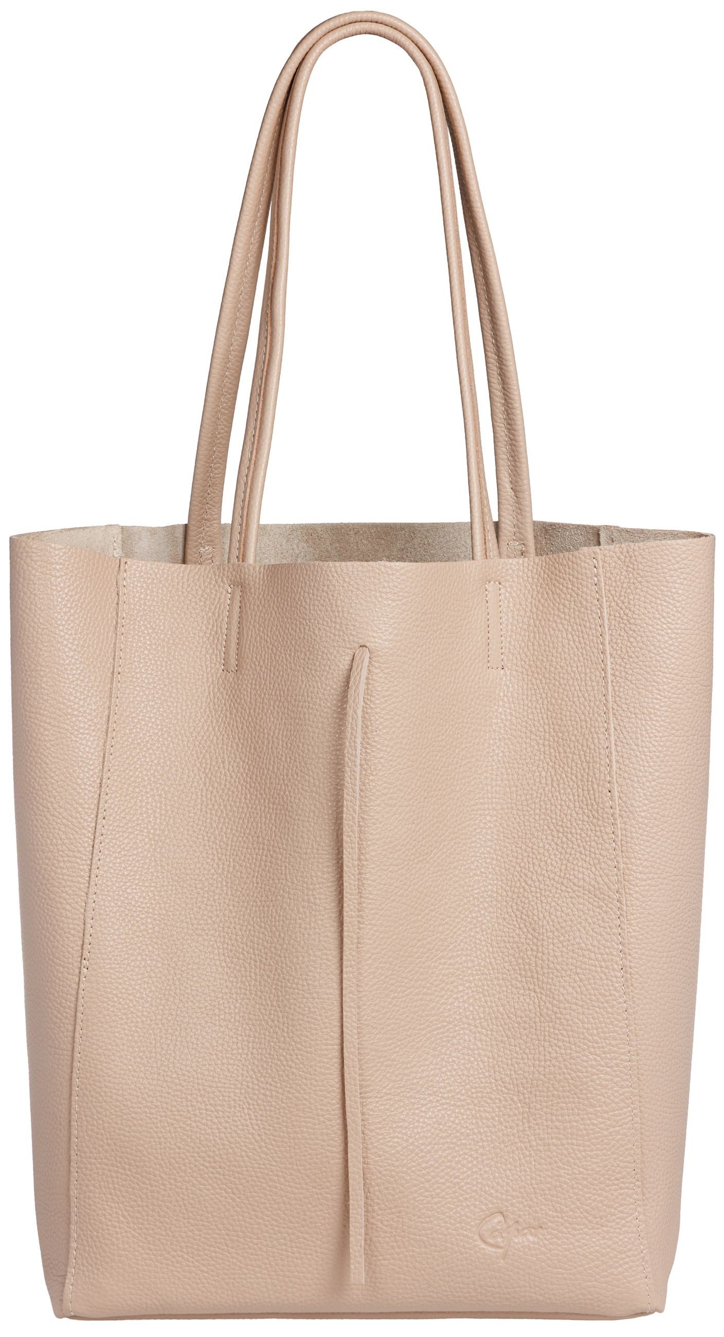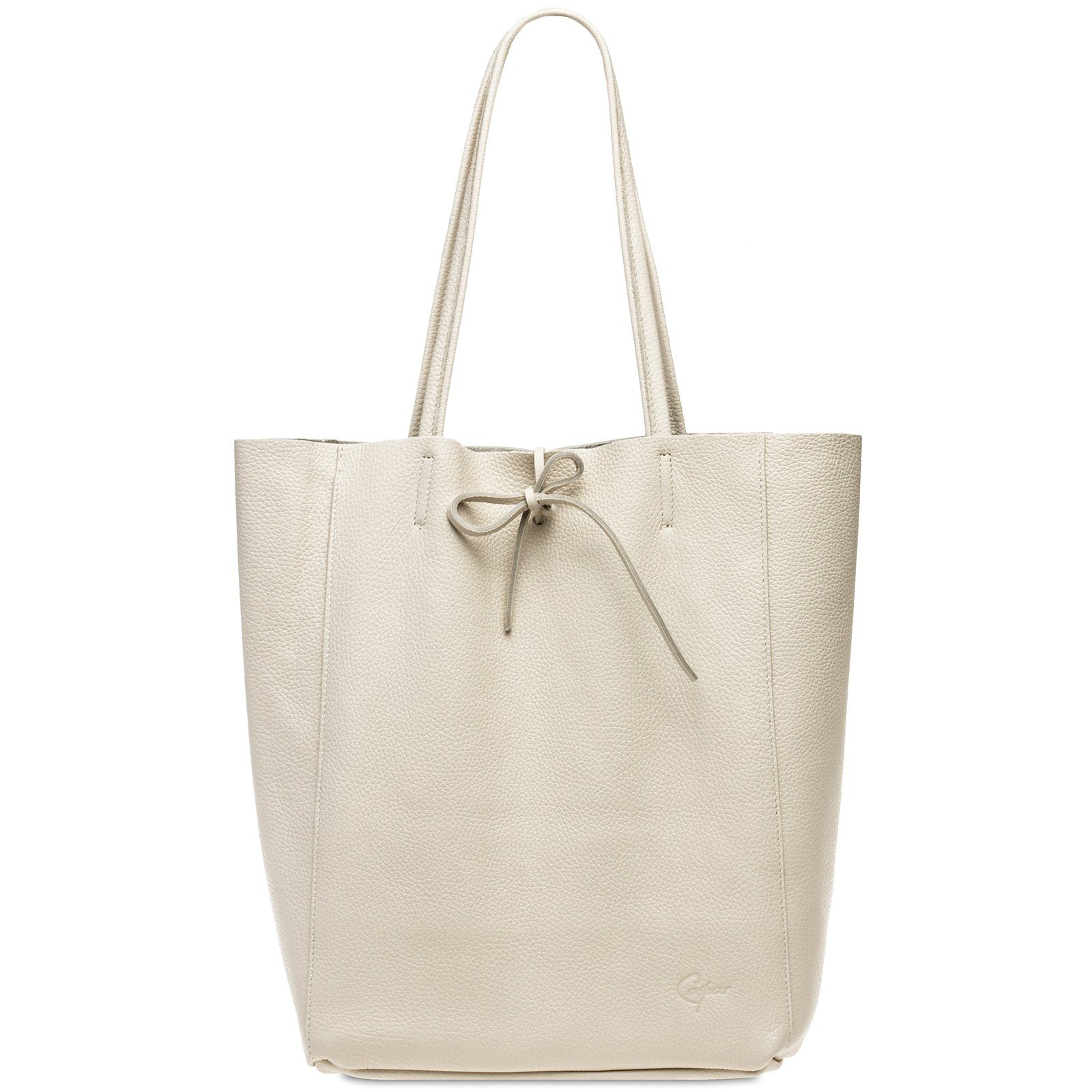 Unsere elegante Damen-Shopper wird aus hochwertigem, genarbtem Rindsleder gefertigt und überzeugt durch seine robuste, unempfindliche Oberfläche sowie eine klare, funktionale Formgebung. Mit einer Размер von ca. 39 × 36 × 11 cm bietet die Tasche ein großzügiges Innenvolumen, in das problemlos auch DIN A4-Ordner oder andere größere Gegenstände passen. Im Inneren befindet sich ein seitlich angebrachtes Sicherheitsfach mit Reißverschluss – ideal zur Aufbewahrung von Wertsachen oder Kleinteilen.