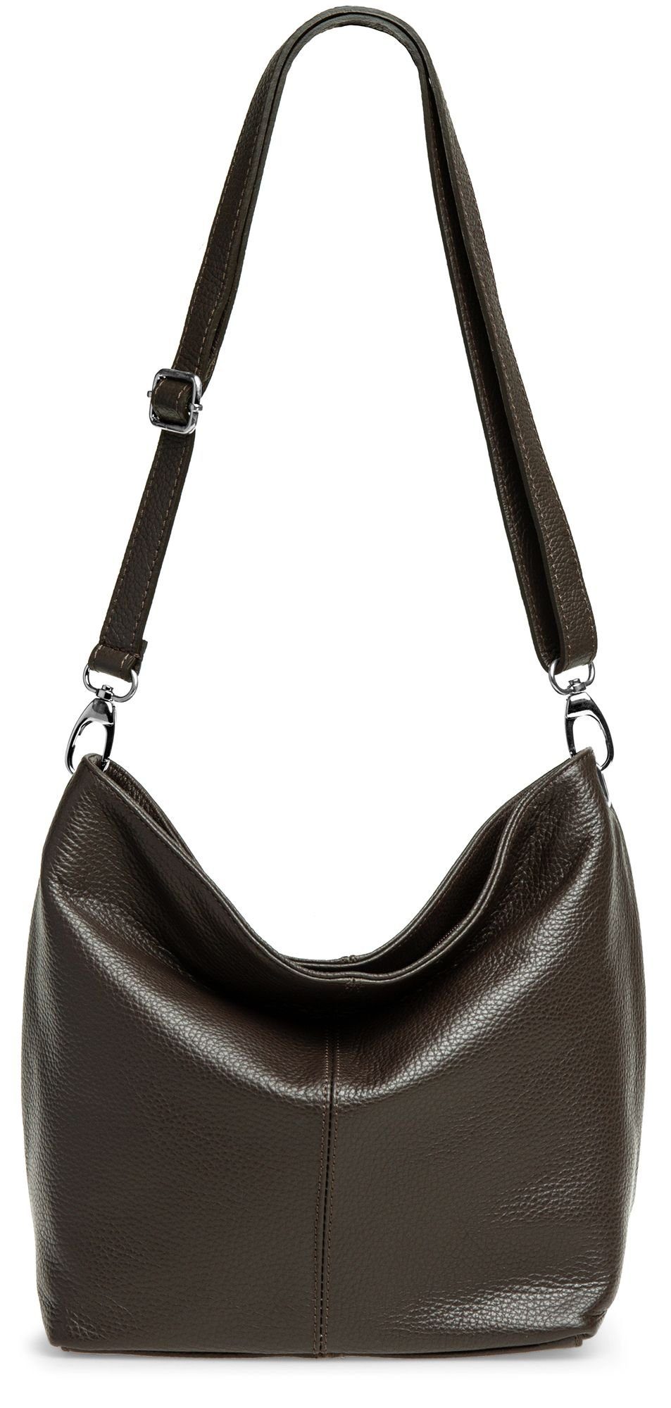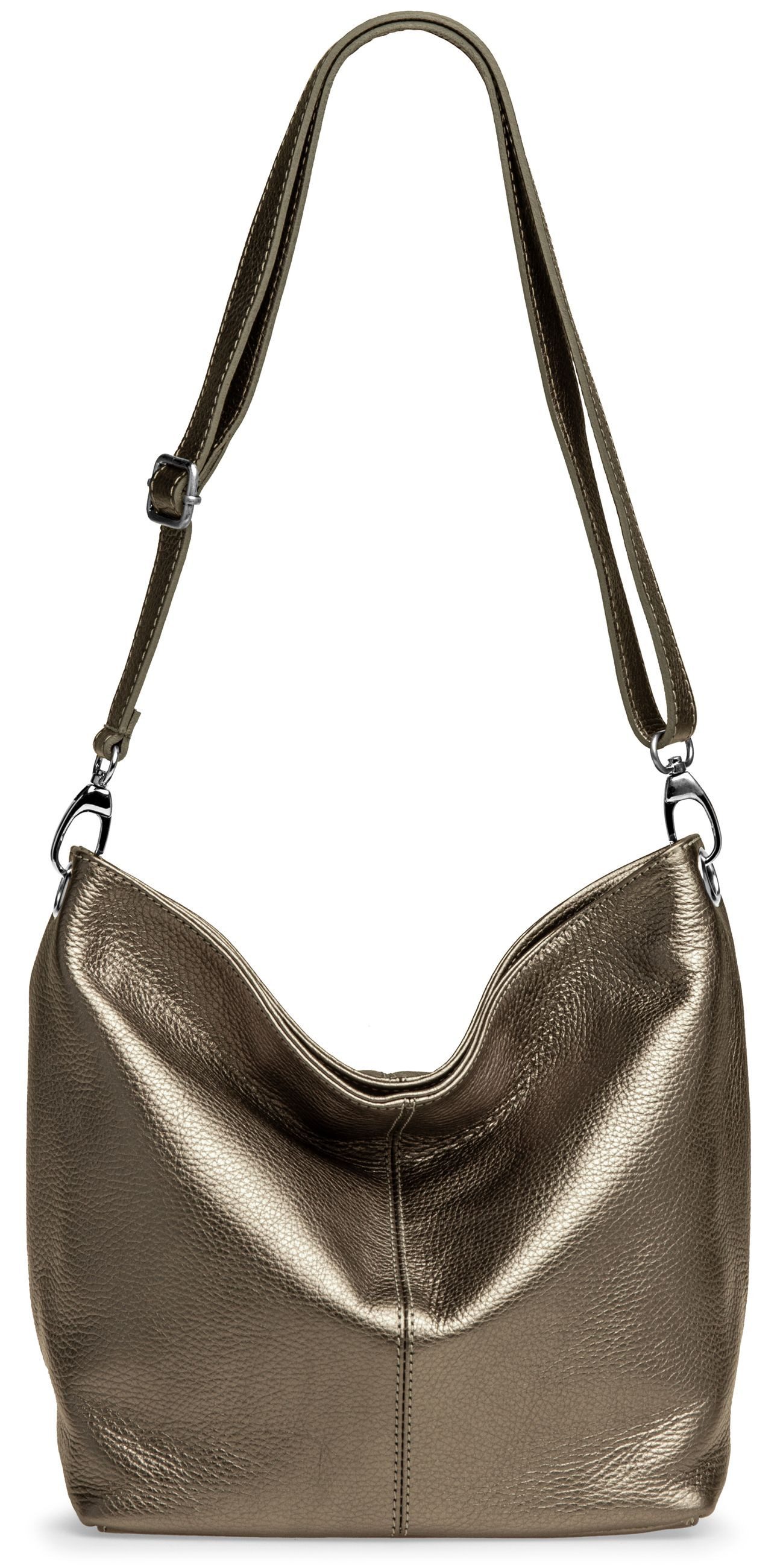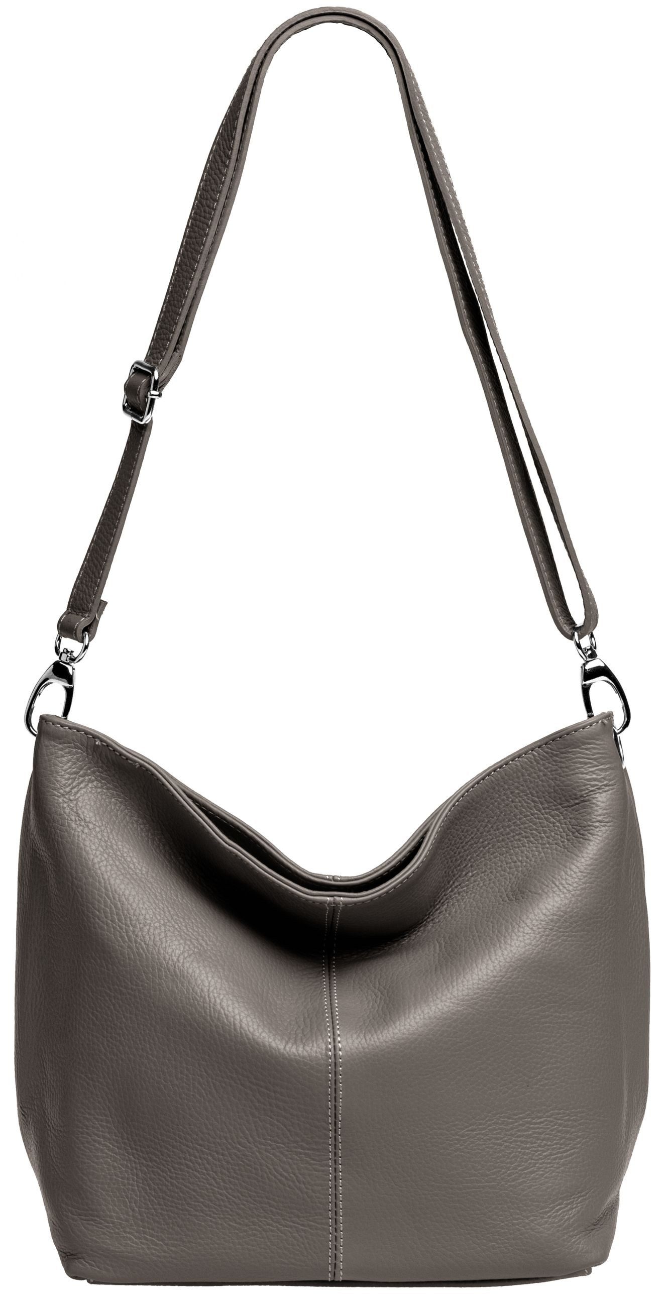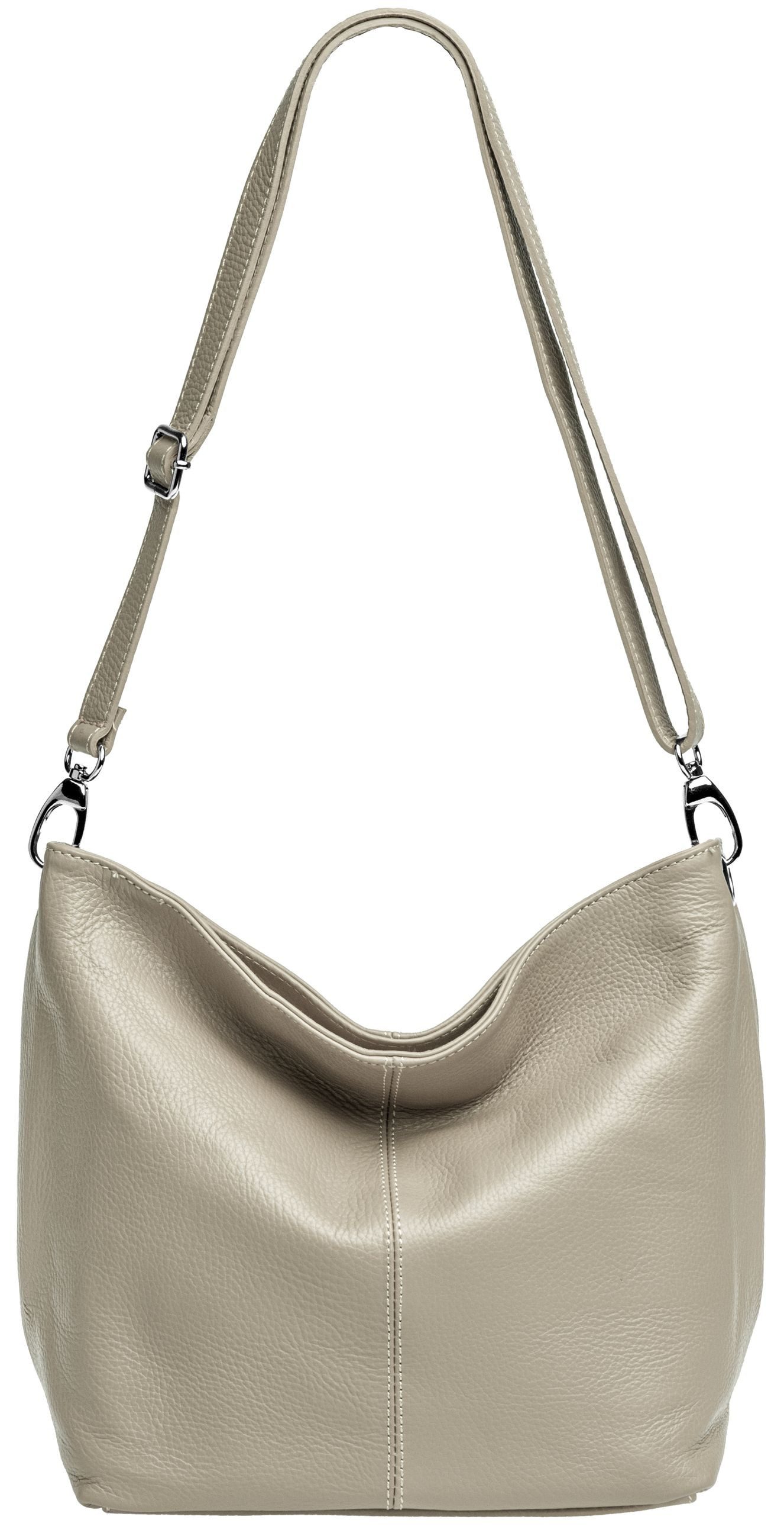 Klassisch schlichte Damen Lederhandtasche mit unterteiltem Hauptfach und bequemem, längenverstellbaren Schultergurt. Ein echter Handtaschen Klassiker. Mit Ihrem durch ein Zwischenfach in 2 große Hauptfächer geteilten Innenraum, ihrem zurückhaltenden Design und dem praktischen Schultergurt ist diese Handtasche optimal geeignet für die tägliche Benutzung. Das Hauptfäch ist außen mit einem Reißverschluss sicher verschliesbar. Trotz der mittleren Размер ist diese Tasche ein echtes Organisationstalent. Der ca. 22 mm breite und angenehm lange Schultergurt aus Leder lässt Sie die Tasche sehr komfortabel tragen. Der Gurt kann einfach verlängert werden und Sie können die Tasche dann auch als Cross-Body-Bag quer über der Schulter tragen. Diese Tasche ist ein echtes Multitalent. Sie wird in einer kleinen italienischen Ledermanufaktur von Hand gefertigt und besteht aus robustem, genarbtem Rindsleder, das auch recht unempfindlich gegen Wasser ist. Maße L x B x H ca. 23 x 14 x 24 cm. Gewicht ca. 480 g. Material: Rindsleder. Caspar - hergestellt in Italien.