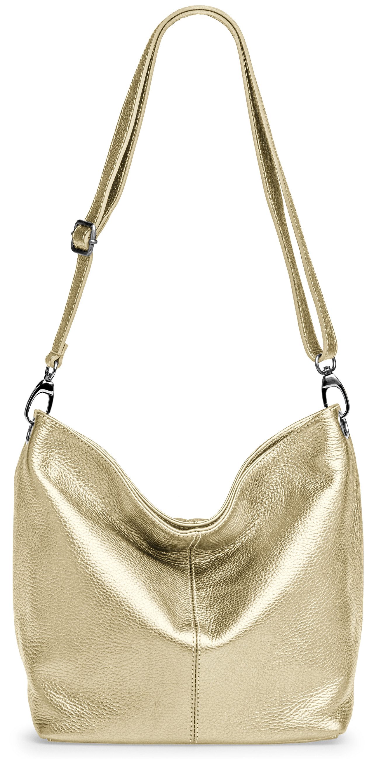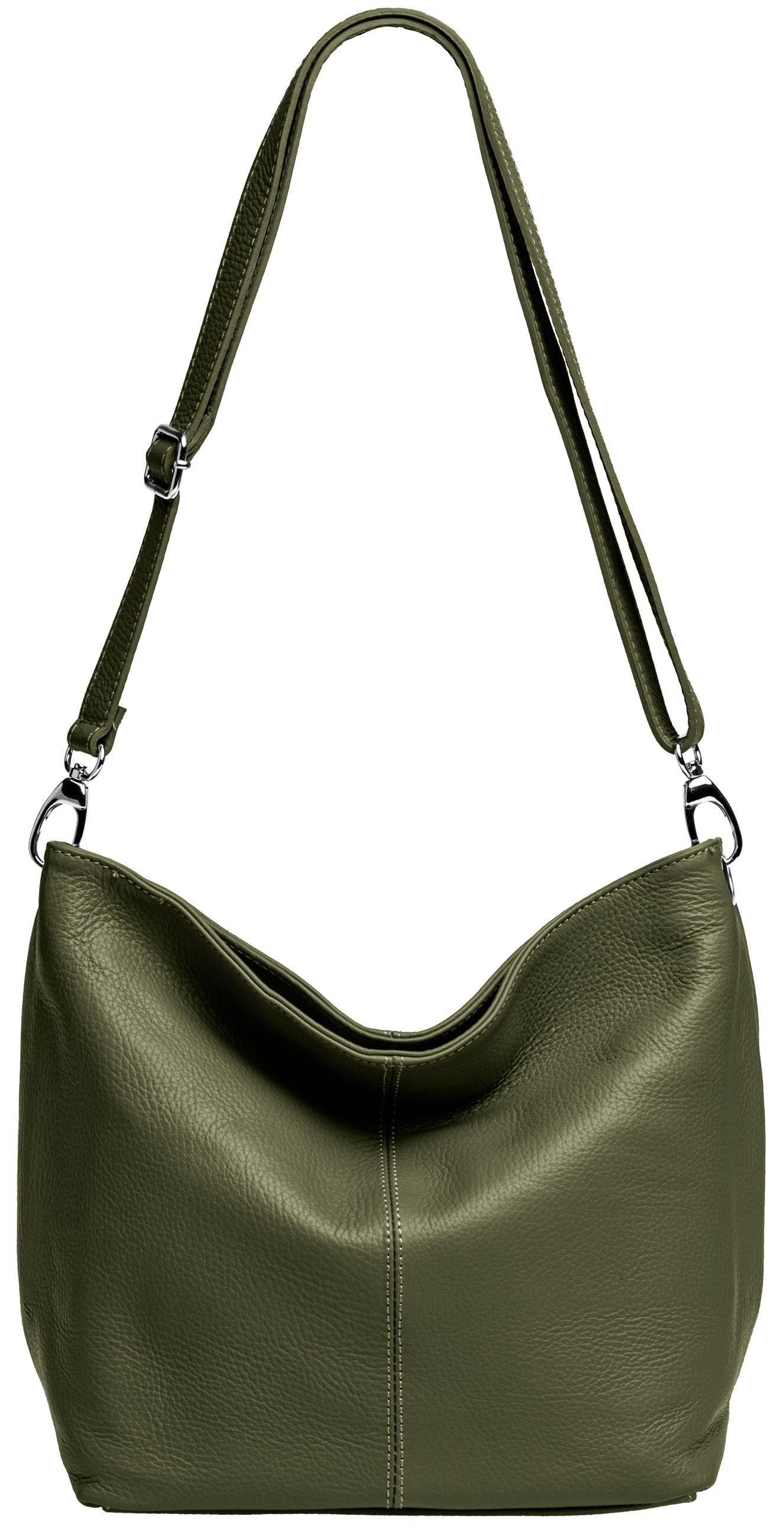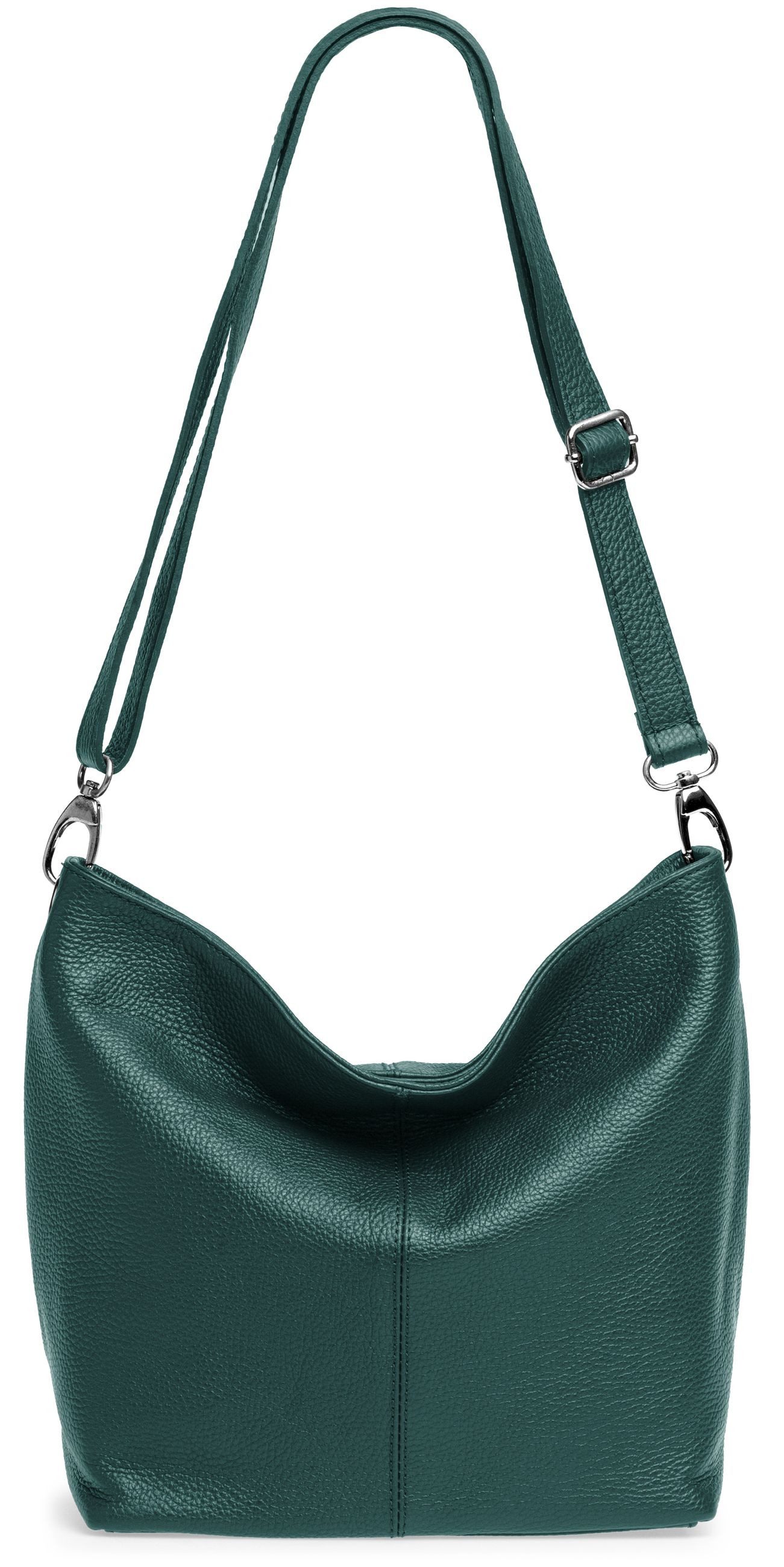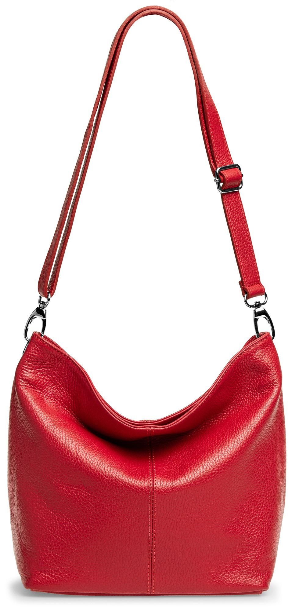 Klassisch schlichte Damen Lederhandtasche mit unterteiltem Hauptfach und bequemem, längenverstellbaren Schultergurt. Ein echter Handtaschen Klassiker. Mit Ihrem durch ein Zwischenfach in 2 große Hauptfächer geteilten Innenraum, ihrem zurückhaltenden Design und dem praktischen Schultergurt ist diese Handtasche optimal geeignet für die tägliche Benutzung. Das Hauptfäch ist außen mit einem Reißverschluss sicher verschliesbar. Trotz der mittleren Размер ist diese Tasche ein echtes Organisationstalent. Der ca. 22 mm breite und angenehm lange Schultergurt aus Leder lässt Sie die Tasche sehr komfortabel tragen. Der Gurt kann einfach verlängert werden und Sie können die Tasche dann auch als Cross-Body-Bag quer über der Schulter tragen. Diese Tasche ist ein echtes Multitalent. Sie wird in einer kleinen italienischen Ledermanufaktur von Hand gefertigt und besteht aus robustem, genarbtem Rindsleder, das auch recht unempfindlich gegen Wasser ist. Maße L x B x H ca. 23 x 14 x 24 cm. Gewicht ca. 480 g. Material: Rindsleder. Caspar - hergestellt in Italien.