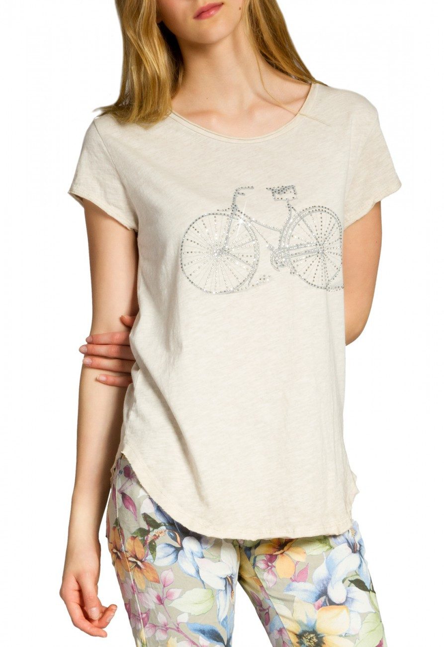 Das kurz T-Shirt aus lebendiger leicht meliert wirkender Baumwollqualität hat einen schmal gefassten U Ausschnitt lässig abgerundete Säume und trägt sich leicht und locker. Ein Fahrrad aus kleinen Strass Steinen verziert als Blickfang die Vorderseite und macht durch dieses schlichte aber dennoch interessante Motiv aus diesem Shirt ein echtes Must Have! Die große Farbauswahl macht das angenehm zu tragende Shirt schnell zum beliebten Kombipartner ob zu Denim oder zum schmalen Rock entscheiden Sie selbst! Das wirklich außergewöhnlich angenehme hochwertige Material besteht zu 100% aus Baumwolle und sorgt für einen super bequemen Tragekomfort. Waschbar ist das Shirt bei 30°C. Die Rückenlänge beträgt ca. 65 cm.