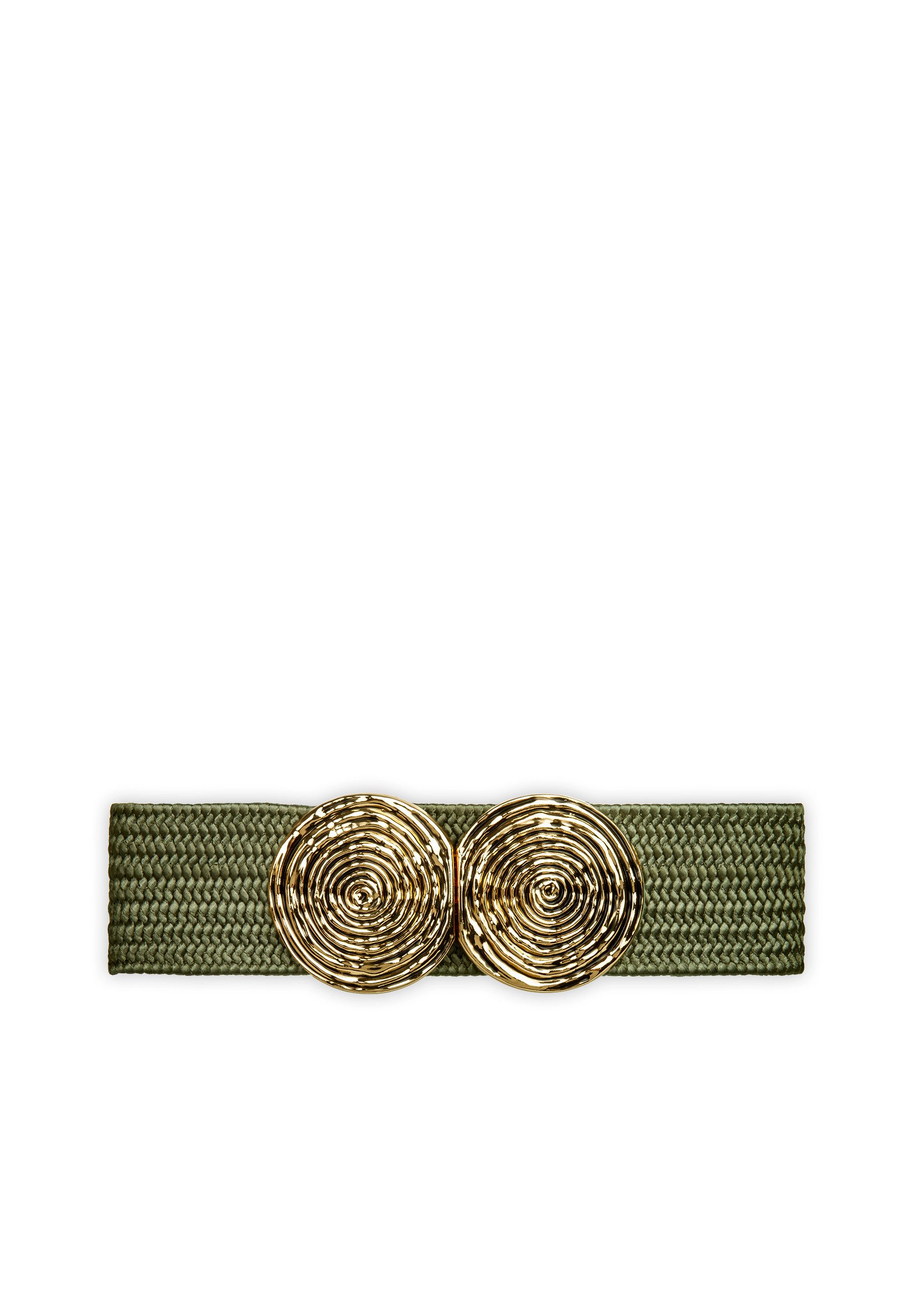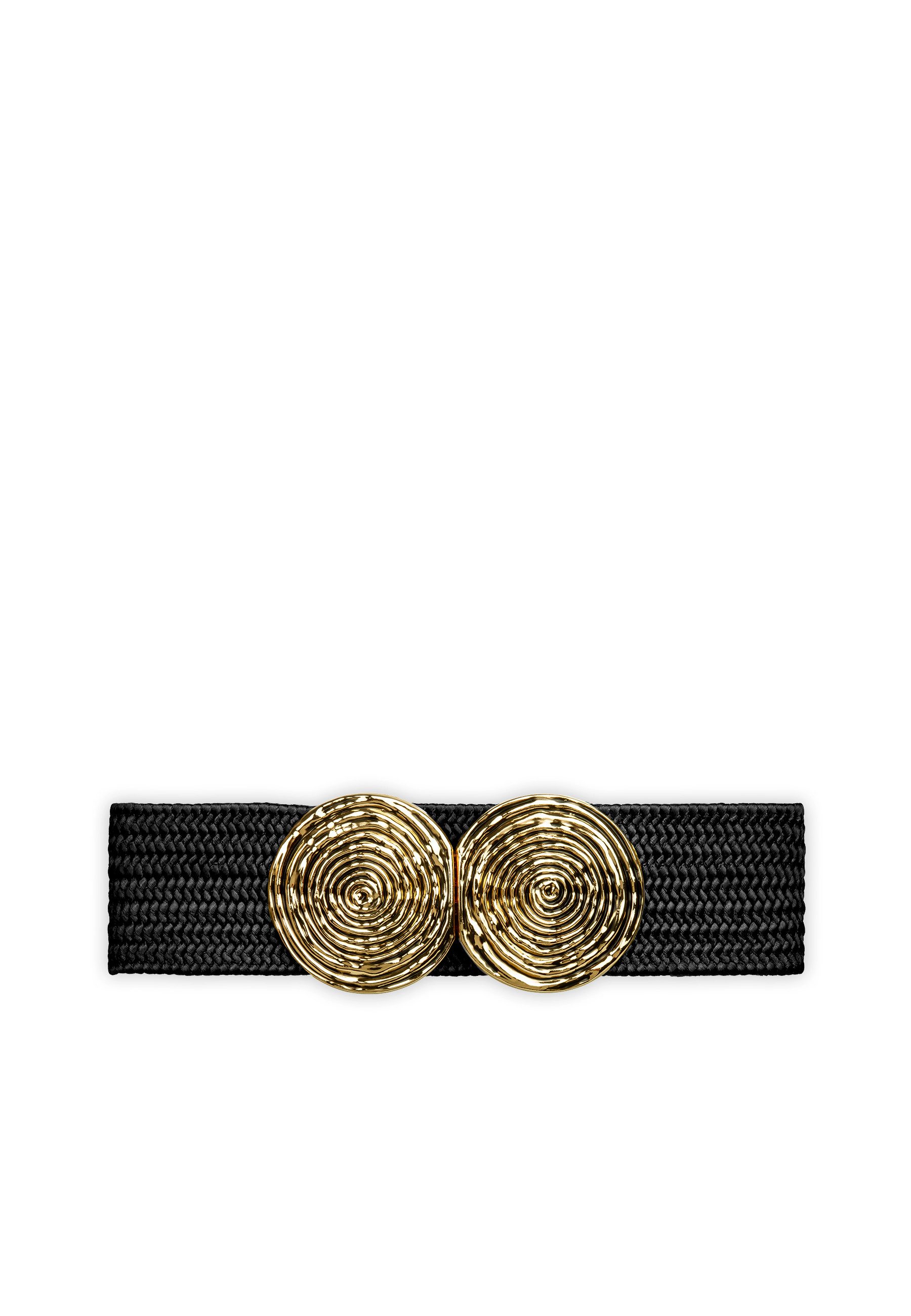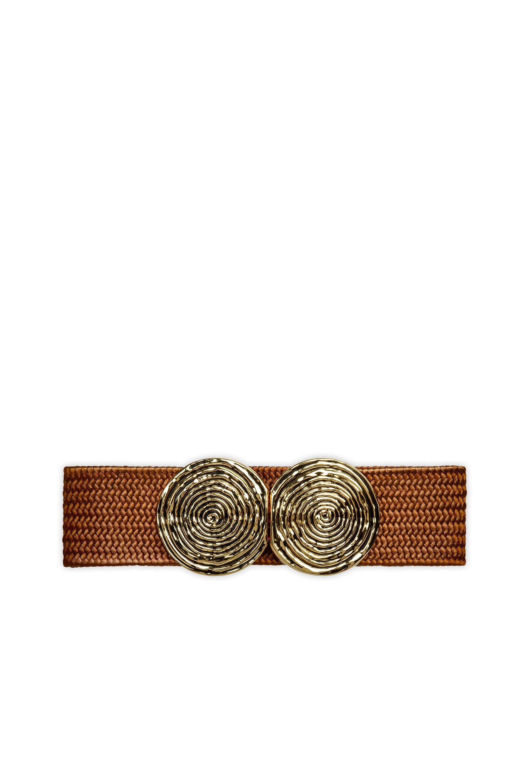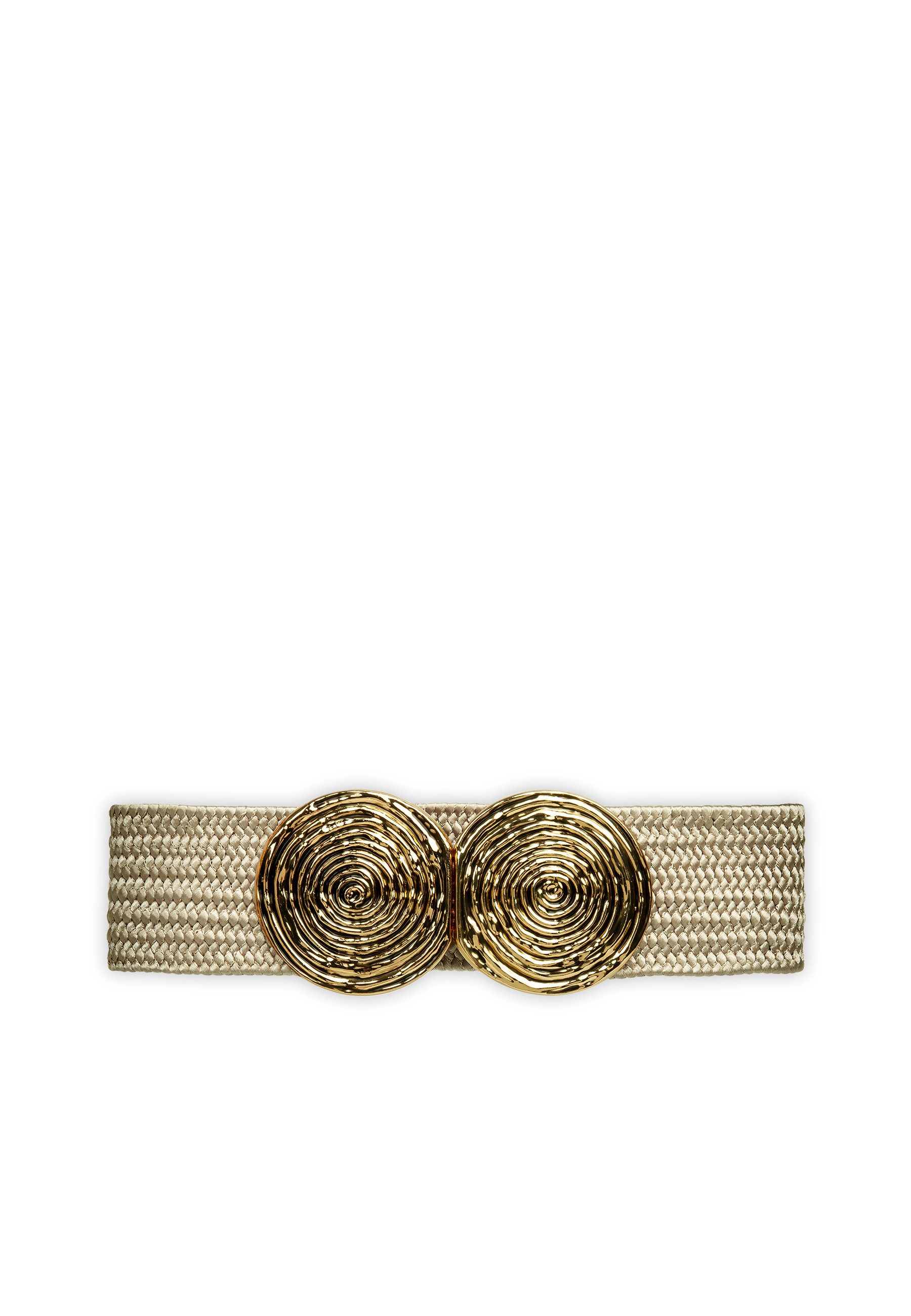 Super eleganter Damen Sommer Stretch-Gürtel zum Tragen auf der Taille oder auf der Hüfte. Das schlichte und dennoch ausgefallene Design des Gürtels macht ihn vielseitig kombinierbar. Die goldfarbene Kreisrunde Doppelschnalle aus Schmuckmetall sorgt definitiv für den Eyecatch Faktor. Dank des 5,7 cm breiten, festen und geflochtenen Elastikbandes trägt sich der Gürtel sehr sicher und angenehm. Bitte beachten Sie, dass zum Tragen in der Taille oder auf der Hüfte eventuell unterschiedliche Размеры ремня benötigt werden können. Wir empfehlen die Gürtelgröße 70 für einen Körperumfang von ca. 70 bis 75 cm, die Gürtelgröße 75 für einen Körperumfang von ca. 75 bis 80 cm und die Gürtelgröße 80 für einen Körperumfang von ca. 80 bis 85 cm. Material: Elastik-Flechtband (Synthetic). Caspar Fashion.