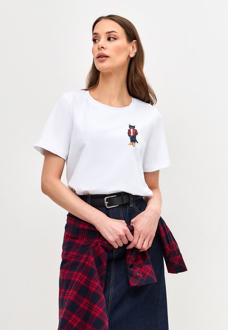 Ob Party, Freizeit oder Streetwear – dieses T-Shirt ist ein echter Allrounder. Es passt sich mühelos jedem Anlass an. Kombinieren Sie es lässig mit Jeans oder kreieren Sie einen eleganten Look mit Rock oder Blazer. Das CAT T-Shirt von Maniita Lacitta ist die perfekte Wahl für Frauen, die ihren individuellen Stil unterstreichen möchten. Ein absolutes Must-have für Ihre Garderobe!