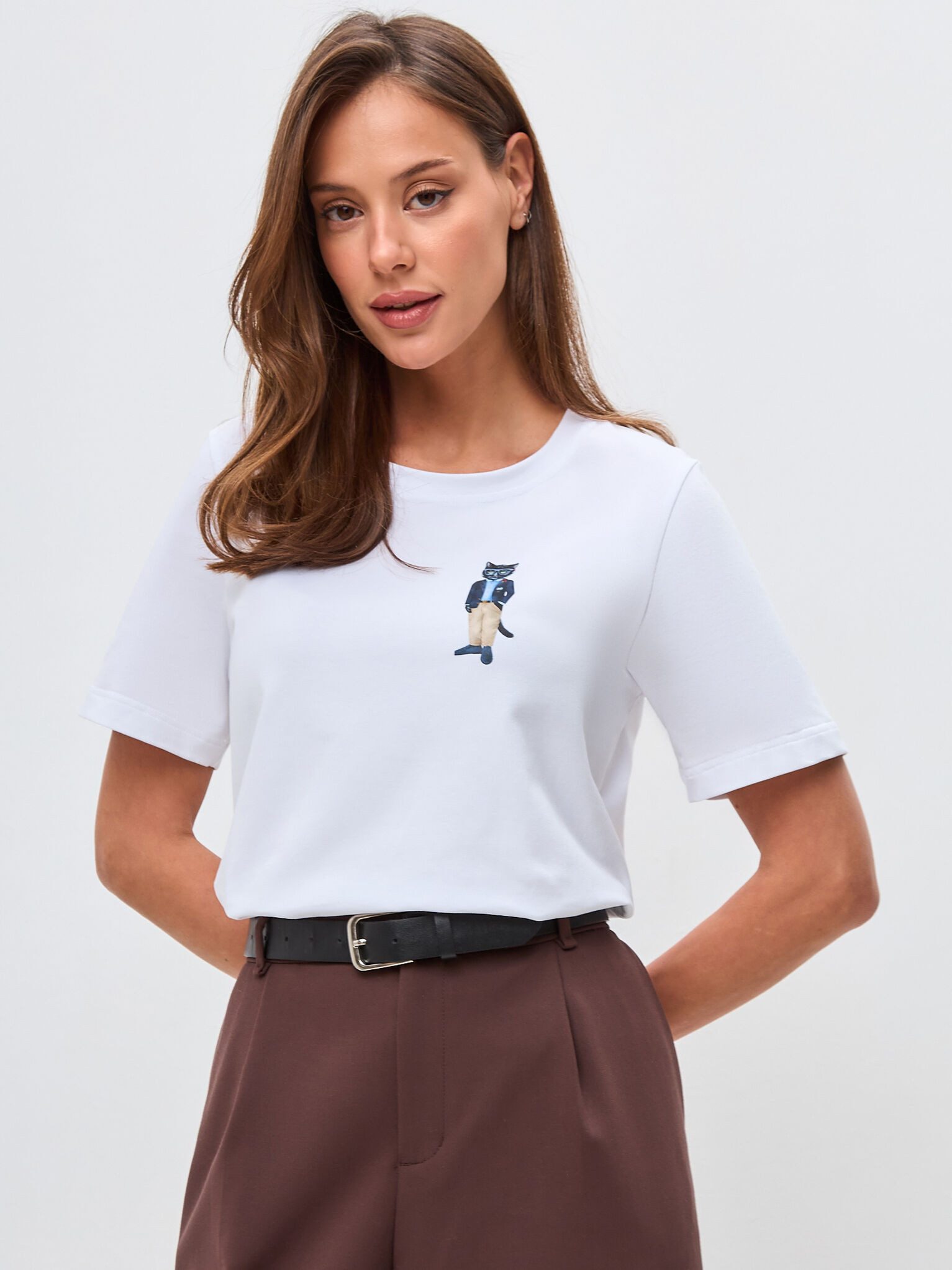 Ob Party, Freizeit oder Streetwear – dieses T-Shirt ist ein echter Allrounder. Es passt sich mühelos jedem Anlass an. Kombinieren Sie es lässig mit Jeans oder kreieren Sie einen eleganten Look mit Rock oder Blazer. Das CAT T-Shirt von Maniita Lacitta ist die perfekte Wahl für Frauen, die ihren individuellen Stil unterstreichen möchten. Ein absolutes Must-have für Ihre Garderobe!