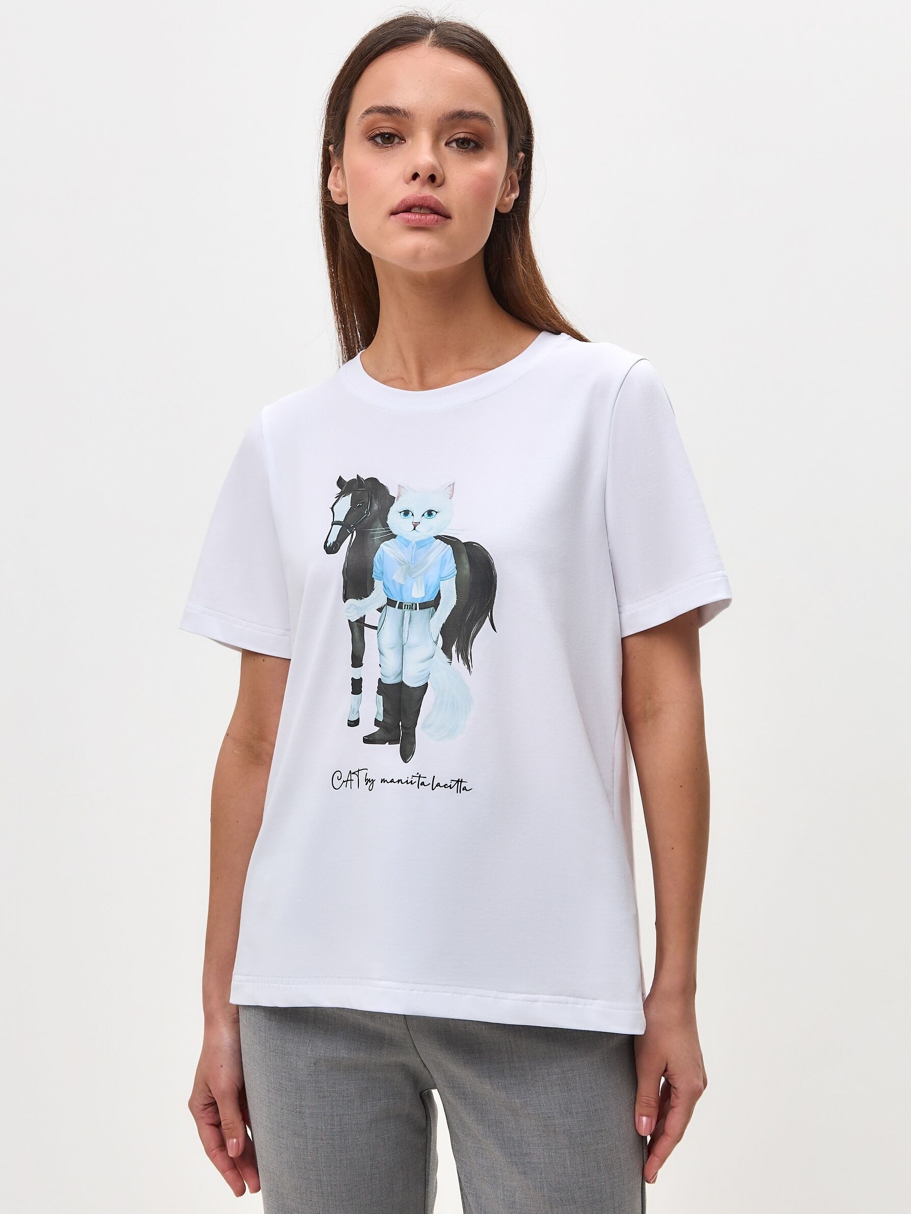 Ob Party, Freizeit oder Streetwear – dieses T-Shirt ist ein echter Allrounder. Es passt sich mühelos jedem Anlass an. Kombinieren Sie es lässig mit Jeans oder kreieren Sie einen eleganten Look mit Rock oder Blazer. Das CAT T-Shirt von Maniita Lacitta ist die perfekte Wahl für Frauen, die ihren individuellen Stil unterstreichen möchten. Ein absolutes Must-have für Ihre Garderobe!