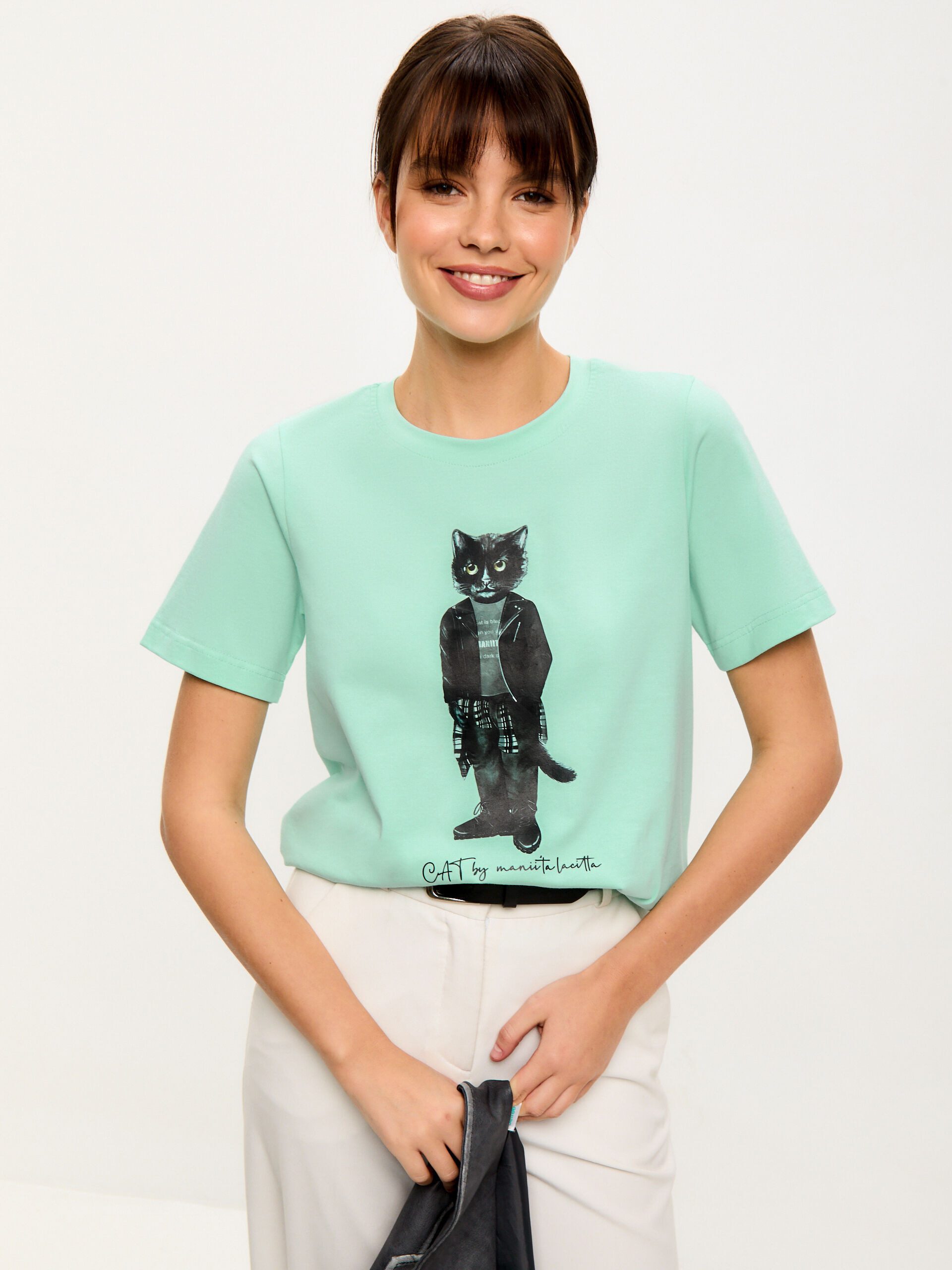 Ob Party, Freizeit oder Streetwear – dieses T-Shirt ist ein echter Allrounder. Es passt sich mühelos jedem Anlass an. Kombinieren Sie es lässig mit Jeans oder kreieren Sie einen eleganten Look mit Rock oder Blazer. Das CAT T-Shirt von Maniita Lacitta ist die perfekte Wahl für Frauen, die ihren individuellen Stil unterstreichen möchten. Ein absolutes Must-have für Ihre Garderobe!