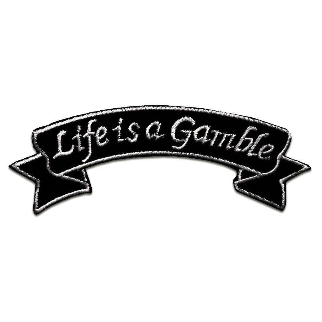 Catch the Patch Aufnäher Bügelbild, Aufbügler, Applikationen, Patches, Flicken, zum aufbügeln, Polyester, Life Is A Gamble Biker - Größe: 10,7 x 3,1 cm