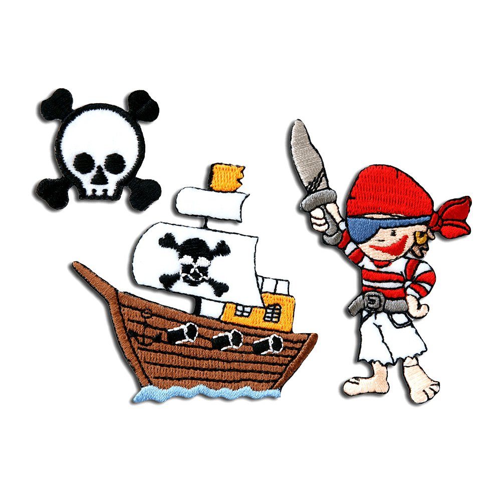 Catch the Patch Aufnäher Bügelbild, Aufbügler, Applikationen, Patches, Flicken, zum aufbügeln, Polyester, Set Pirat Schiff - Größe: verschiedene Größen