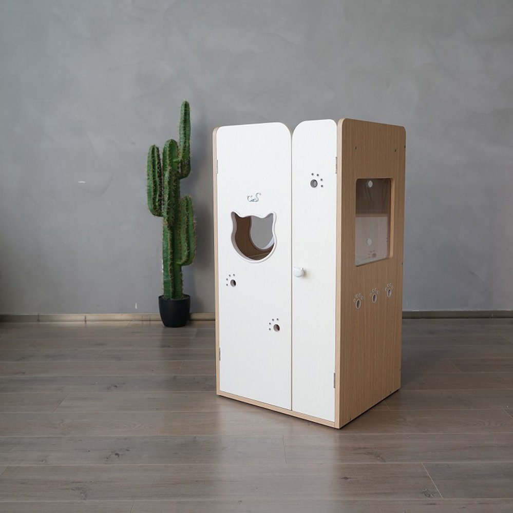 • DESIGN KONZEPT – Durch das herausnehmbare Gitter im Katzenschrank werden Katzenpfötchen nach der Benutzung von der Streu gereinigt. So gelangt kein Katzenstreu in die Wohnung.
