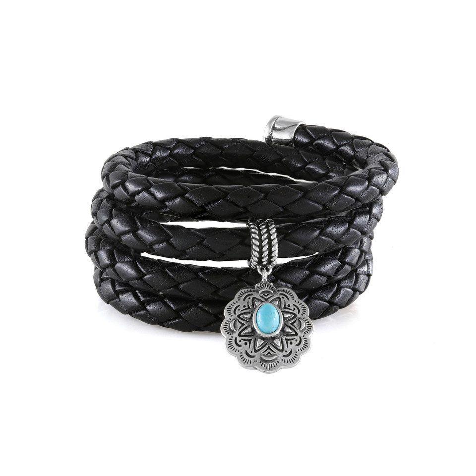 Das Kingman-Türkis-Lederarmband (Desert Chic) ist ein zeitloses Schmuckstück, das durch seine natürliche Eleganz besticht. Der charakteristische Kingman-Türkis aus den USA, eingefasst als ovale Cabochon mit 0,45 Karat, ist meisterhaft im 925er Sterlingsilber-Setting eingefasst. Dieses Armband, mit seinem ca. 61 cm langen geflochtenen schwarzen Lederband und einem stabilen Stahlverschluss, ist perfekt für Einsteiger und Kenner gleichermaßen. Es kombiniert rustikalen Charme mit modernem Design, passt ideal zu legeren Outfits wie Jeans und T-Shirt, aber auch zu eleganteren Looks für besondere Anlässe. Das Schmuckstück verbindet amerikanischen Türkis mit hochwertigem Leder und Silber – eine harmonische Symbiose für alle, die individuelle und stilvolle Accessoires schätzen.