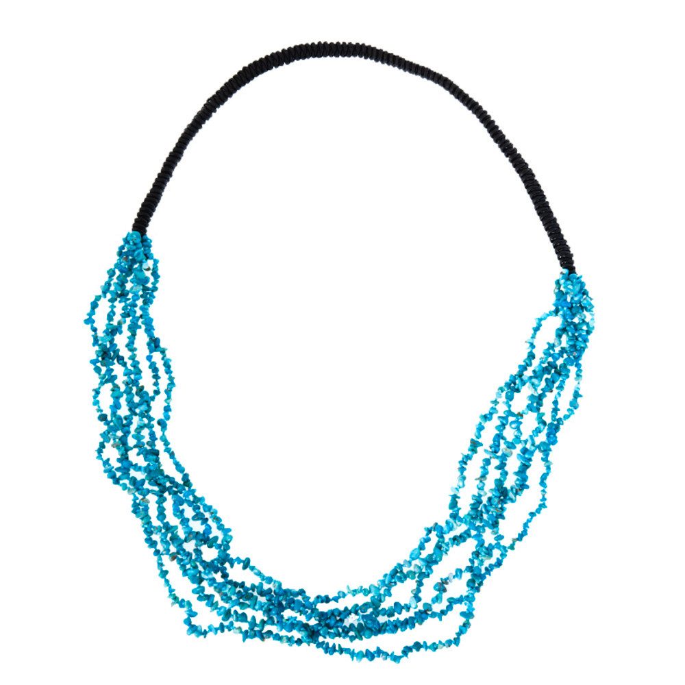 Die Türkis-Halskette (Desert Chic) von Cavill besticht durch ihr eindrucksvolles Design mit leuchtenden chinesischen Türkisperlen im Gesamtkaratgewicht von 247,5 ct. Auf weichem Leder aufgefädelt, verbindet sie natürliche Schönheit mit robustem, elegantem Material. Besonders für Erstkäufer bietet diese Kette eine wunderschöne Einführung in die Welt des hochwertigen Türkisschmucks. Für Kenner entfaltet sie ihre volle Wirkung als Statement-Piece mit einem mehrschichtigen, dynamischen Look, der hervorragend zu Boho- und Desert Chic-Stilen passt. Kombinieren Sie die Kette zu legeren Outfits oder setzen Sie sie als auffälliges Highlight bei besonderen Anlässen ein, um jedem Outfit eine elegante Note zu verleihen.
