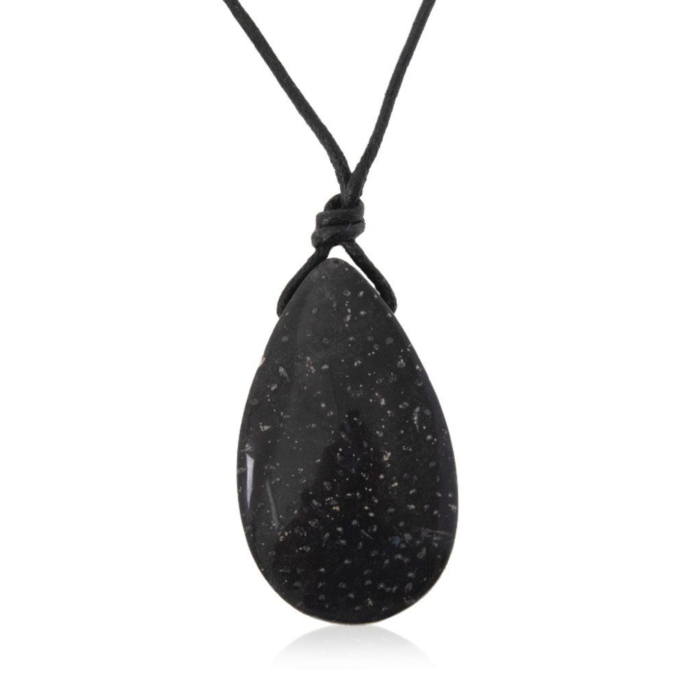 Das Versteinerte Palmenholz-Collier (Bali Barong) entführt Sie in die mystische Welt der Naturwunder Indonesiens. Der Anhänger ist mit einem 94 Karat schweren, tropfenförmigen Cabochon aus echtem versteinertem Palmenholz besetzt, welcher sein organisches und zugleich edles Erscheinungsbild unterstreicht. Für Einsteiger bietet dieser Unisex-Schmuck eine harmonische Verbindung von Natur und Design, während erfahrene Sammler die authentische Herkunft und das beeindruckende Gewicht des Edelsteins zu schätzen wissen. Das verstellbare schwarze Band macht das Collier flexibel tragbar – ob als Statement-Kropfband oder längere Halskette. Kombinieren Sie dieses Schmuckstück ideal zu lässigen Casual-Outfits oder eleganter Abendgarderobe; ein perfektes Geschenk, das sowohl Männer als auch Frauen anspricht.