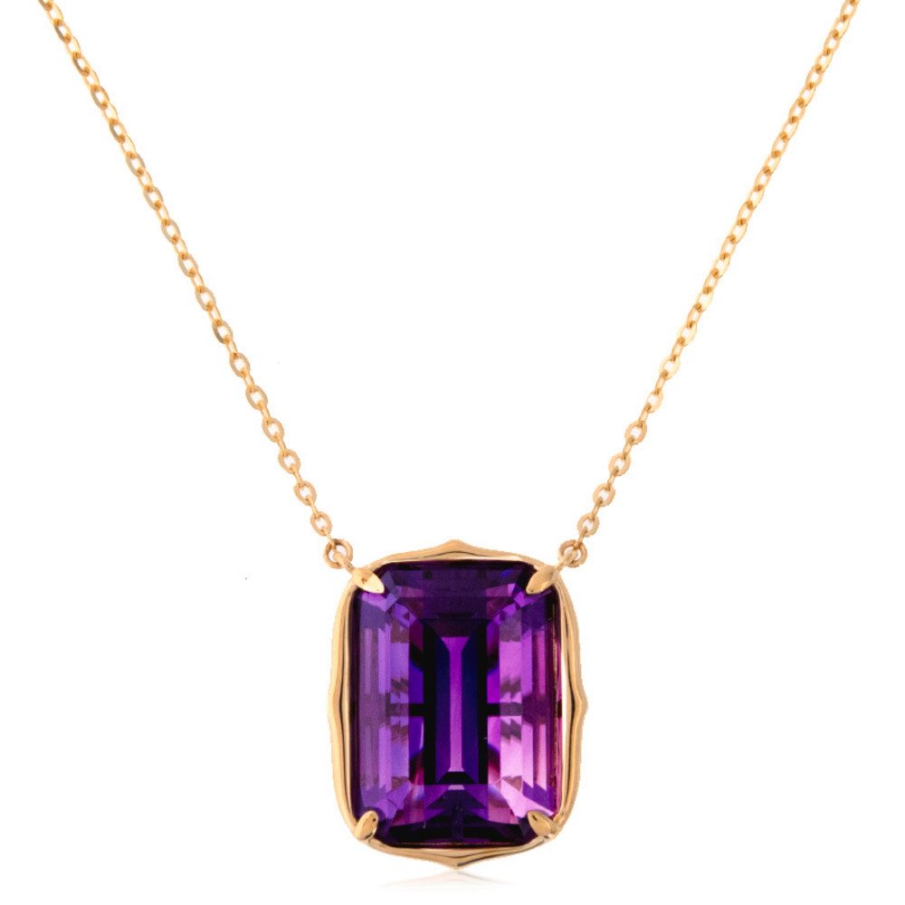 Das Sambia-Amethyst-Goldcollier (de Melo) ist ein faszinierendes Schmuckstück, das speziell für Liebhaber feiner Edelsteine entwickelt wurde. Der hochwertige Amethyst aus Sambia besticht durch seinen Oktagon-Treppenschliff und ein beeindruckendes Karatgewicht von 7,794 ct. Dieses Meisterwerk ist in 585er Gelbgold gefasst und bietet mit seiner zarten Kette und der eleganten Anhängergröße von 17,5 x 14 mm ein ausgewogenes, stilvolles Design. Für Erstkäufer ist dieses Collier ein idealer Einstieg in die Welt der Edelsteine, während erfahrene Schmuckkenner die harmonische Kombination aus tiefviolettem Amethyst und luxuriösem Gold zu schätzen wissen. Dieses Schmuckstück passt perfekt zu einem kleinen Schwarzen oder einem eleganten Abendkleid und verleiht jedem Outfit einen königlichen Touch – ob bei festlichen Anlässen oder im Alltag.