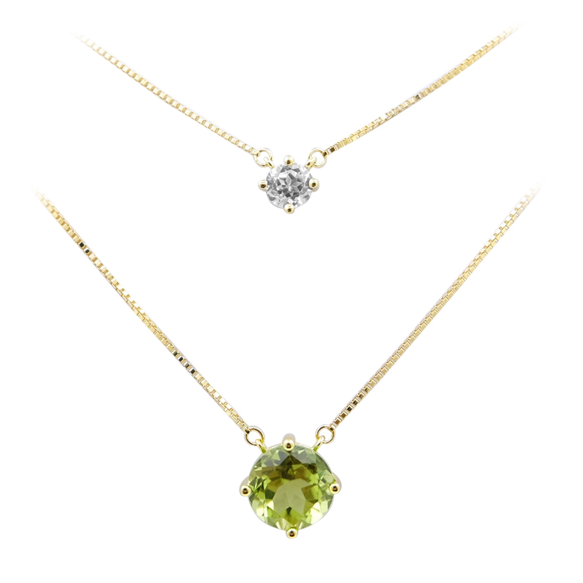 Unser Peridot-Goldcollier "de Melo" präsentiert sich als perfekte Einführung in die Welt der edlen Schmucksteine, ideal für Erstkäufer und Kenner gleichermaßen. Der leuchtende Peridot aus China in Rundschliff, gefasst in hochglänzendem 375er Gelbgold, harmoniert meisterhaft mit einem funkelnden Zirkon aus Kambodscha, der dem Collier sein subtileres Strahlen verleiht. Die Kombination dieser Edelsteine verleiht dem Schmuckstück eine faszinierende Tiefe und Lebendigkeit. Dieses luxuriöse Collier setzt sowohl im formellen als auch im legeren Outfit stilvolle Akzente – tragen Sie es zu besonderen Anlässen oder heben Sie damit Ihre Abendgarderobe elegant hervor.