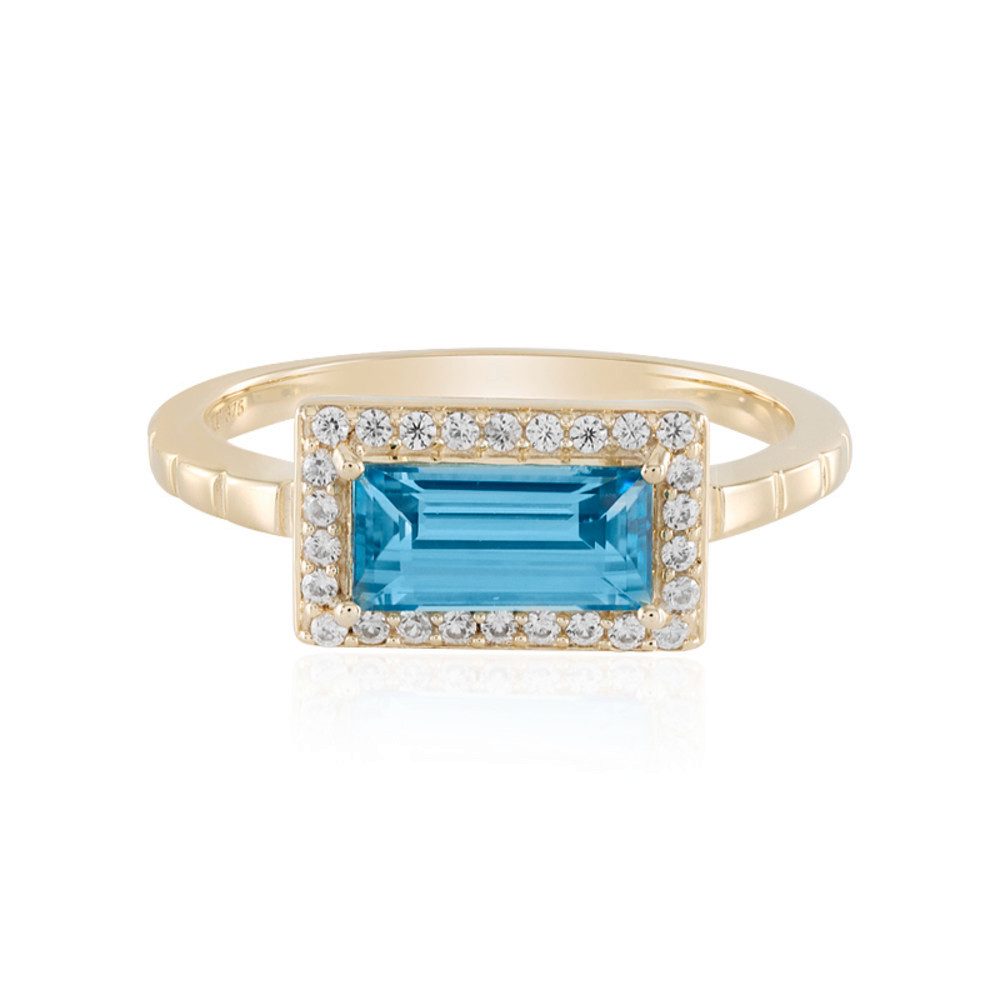 Der Ratanakiri-Zirkon-Goldring (Adela Gold) begeistert mit einem hochwertigen, farbintensiven Zirkon aus Kambodscha, der präzise im Baguette-Treppenschliff gearbeitet und in 375er Gelbgold gefasst ist. Ein idealer Einstieg für Erstkäufer, die einen brillanten Edelstein schätzen. Schmuckliebhaber wissen den zentralen 2,187 Karat großen Ratanakiri-Zirkon und die umgebenen 26 funkelnden Rundschliff-Zirkone mit insgesamt 2,496 Karat zu schätzen. Das elegante Design passt hervorragend zu festlicher Abendgarderobe oder setzt modische Akzente im Alltag.