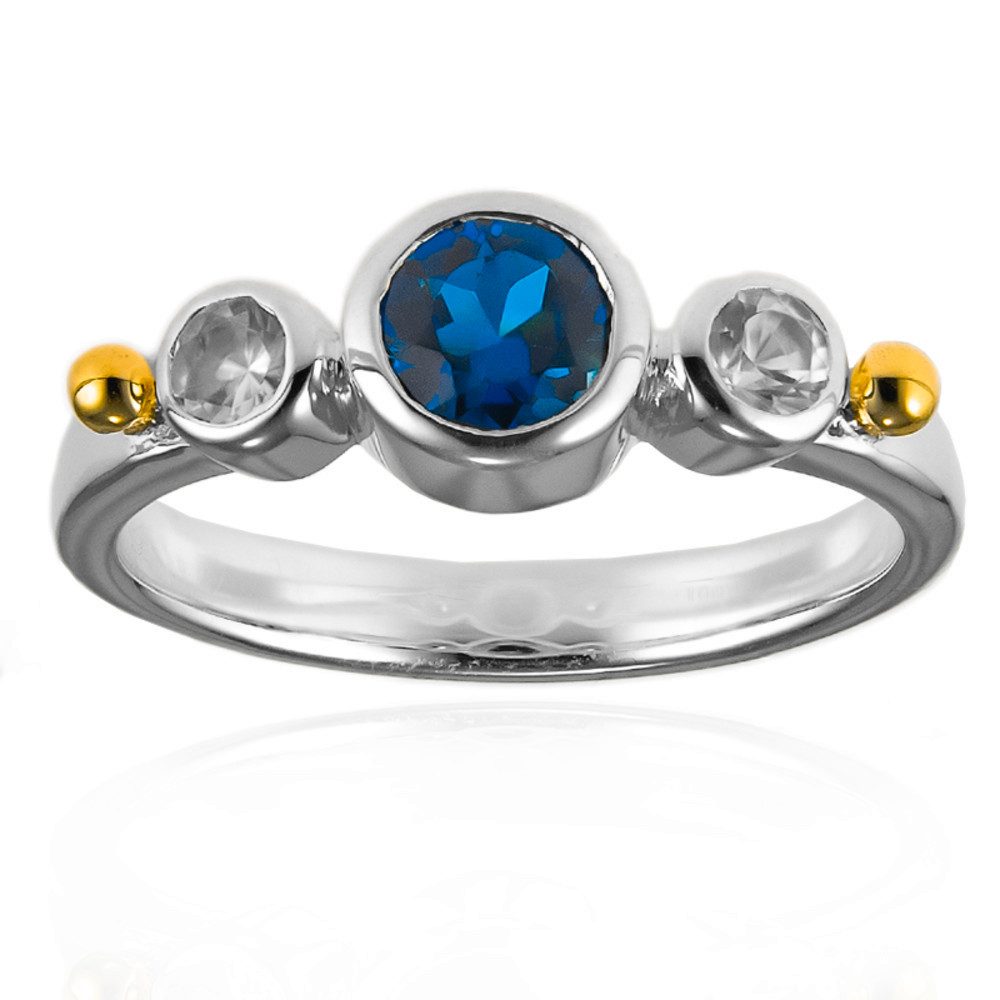 Entdecken Sie den Londonblauer Topas-Silberring mit Gold (Granulieren) von Cavill – ein Meisterwerk der Schmuckkunst, das besonders Erstkäufer begeistert. Der strahlende Londonblaue Topas wird meisterhaft in 925er Sterling Silber gefasst und mit zarten 14-karätigen Goldgranulierungen veredelt, was dem Ring eine außergewöhnliche Tiefe und Eleganz verleiht. Für erfahrene Schmuckliebhaber offenbart dieses Stück authentische brasilianische Topasqualität im Rundschliff, flankiert von funkelnden Zirkonen aus Tansania, die das Design abrunden. Dieses Schmuckstück passt perfekt zu eleganten Abendoutfits und verleiht auch einem Casual Look einen Hauch Luxus – ideal für festliche Anlässe oder das tägliche Tragen.