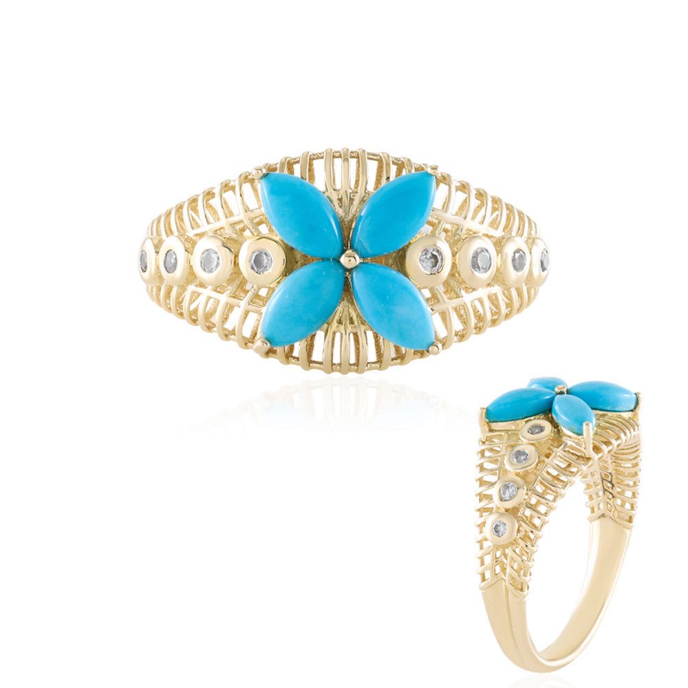 Der Sleeping Beauty-Türkis-Goldring von Ornaments by de Melo besticht durch seine außergewöhnliche Kombination aus lebhaftem Dornröschen-Türkis und funkelnden kambodschanischen Zirkonen, meisterhaft eingefasst in 9 Karat Gelbgold. Dieses Schmuckstück ist perfekt für alle, die ihren Stil mit einem Hauch von Farbe und Luxus bereichern möchten. Anfänger schätzen die natürliche Schönheit der Marquise-Cabochon-Türkise, während erfahrene Schmuckliebhaber die filigrane Prong-Fassung und die harmonischen Farbkontraste besonders bewundern. Der feminine Goldring passt ideal zu klassischen Business-Outfits oder eleganten Abendkleidern und macht sich auch als Geschenk zu Jubiläen oder Geburtstagen hervorragend.