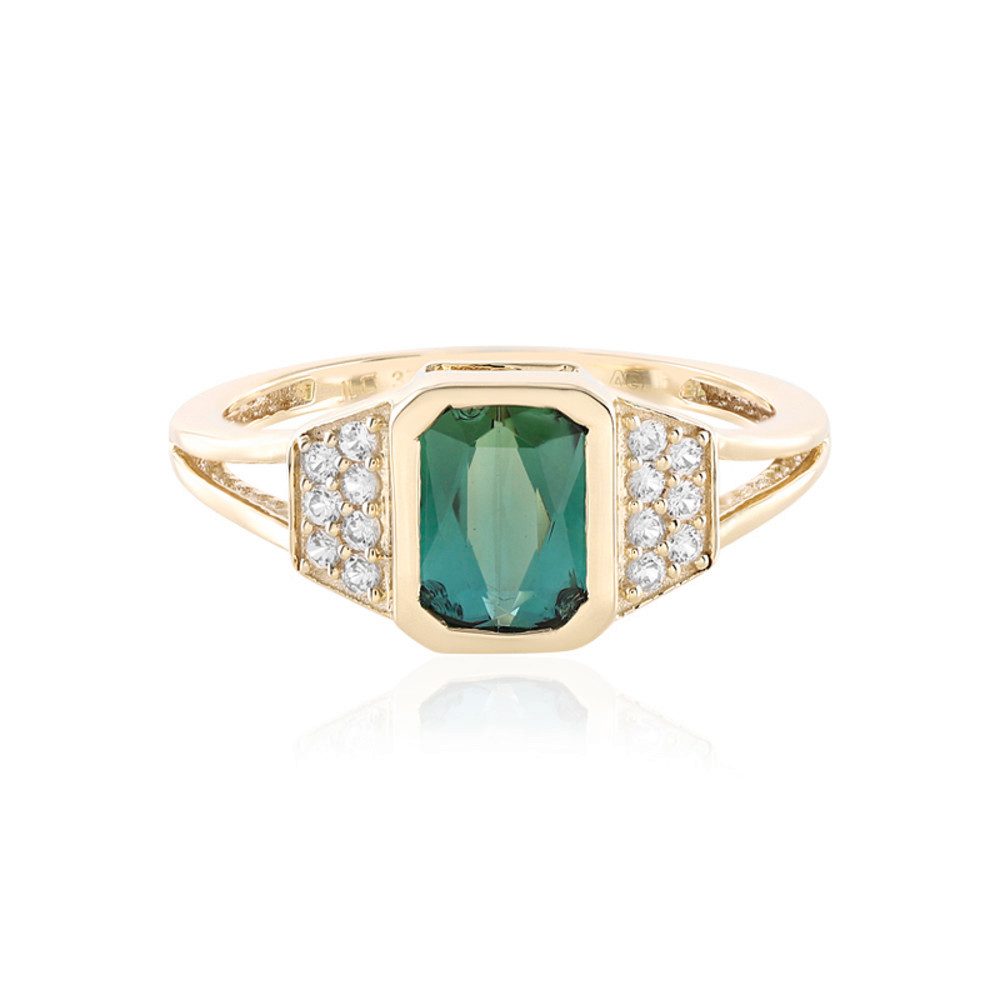 Der Indigolith-Goldring aus der Adela Gold Kollektion ist ein Meisterwerk, das besonders Erstkäufer begeistert. Der zentral eingefasste, 0,844 Karat schwere brasilianische Indigolith in achteckigem Radiantschliff strahlt in einem satten Grün und ist von 14 funkelnden kambodschanischen Zirkonen umgeben, die insgesamt 0,166 Karat wiegen. Dieser Ring aus 9 Karat Gelbgold wiegt 2,04 g und besticht durch sein zeitlos elegantes Design. Er passt ideal zu einem eleganten Business-Outfit oder als farblicher Akzent bei festlichen Anlässen und verleiht sowohl dem kleinen Schwarzen als auch einem maßgeschneiderten Anzug eine besondere Raffinesse.