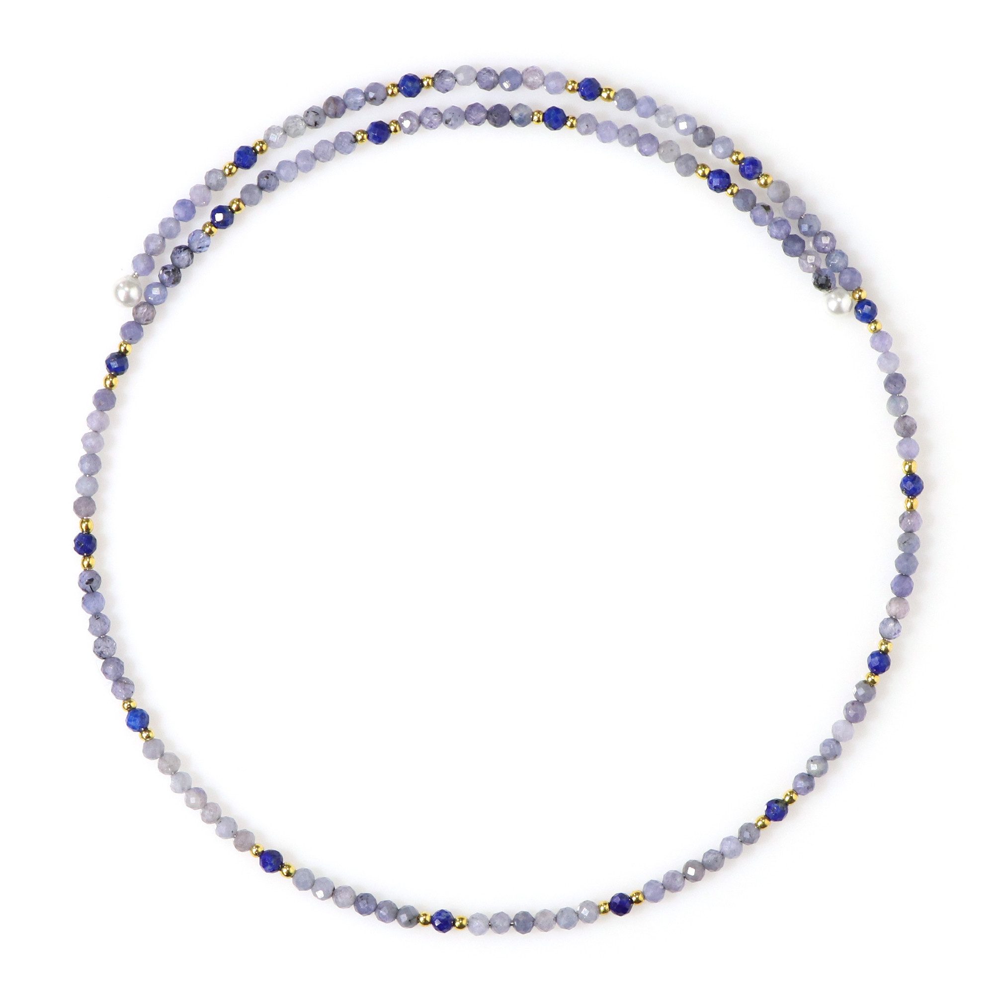 Der Edelstein-Stahlhalsreif (Riya) ist ideal für alle, die erstmals in die Welt der Edelsteine eintauchen möchten. Hochwertige, facettierte Edelsteine wie tansanischer Tansanit und afghanischer Lapislazuli sind meisterhaft in robusten Edelstahl gefasst. Ergänzt wird das harmonische Design durch goldene Hämatitperlen aus den USA und weiße Süßwasserzuchtperlen aus China. Mit ca. 31,5 cm Длина passt der Halsreif perfekt zu lässiger Freizeitmode ebenso wie zu Business-Outfits oder besonderen Anlässen.
