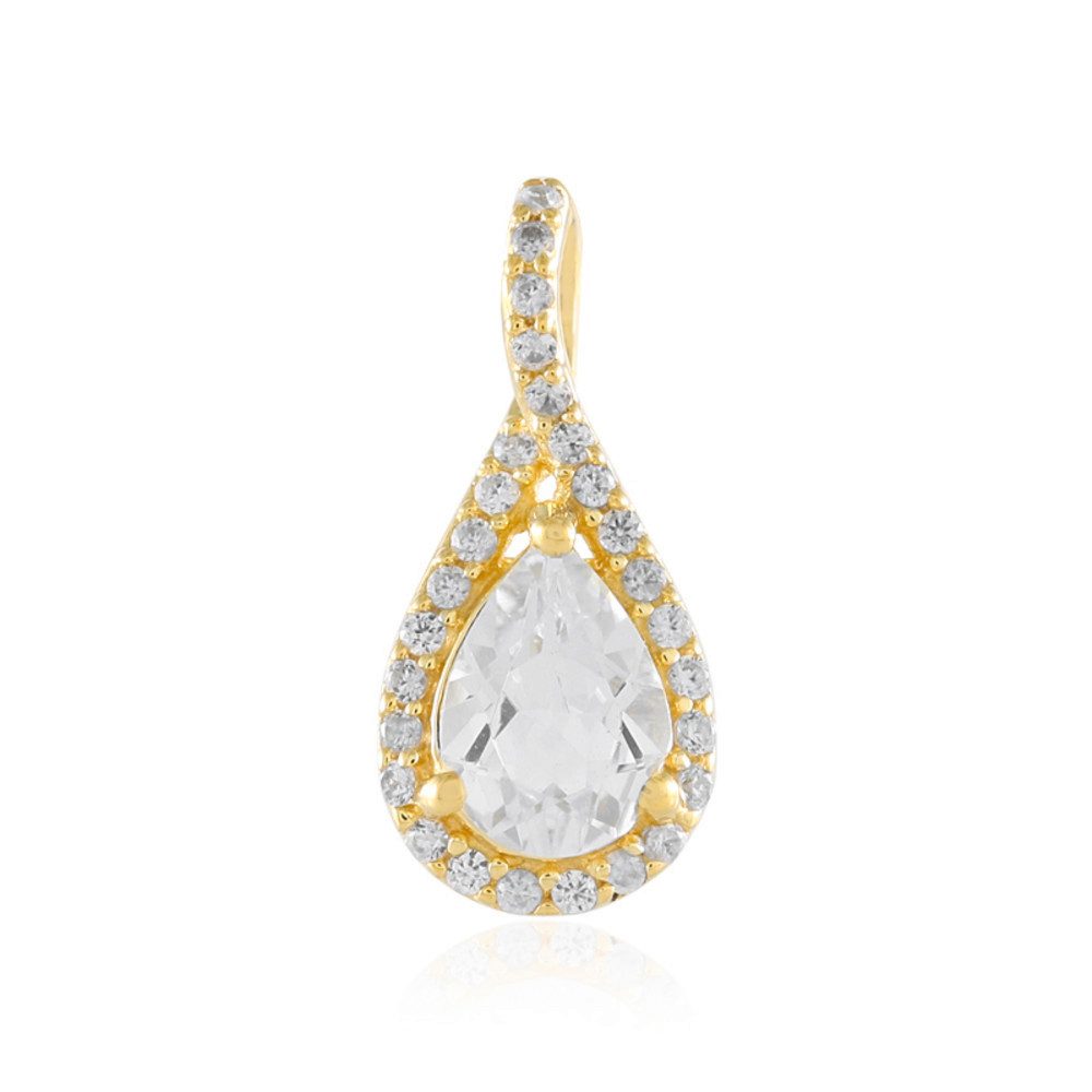 Der weiße Topas-Silberanhänger von Cavill eignet sich perfekt für Erstkäufer von Edelstein-Schmuck. Der weiße Topas aus Madagaskar, 0,618 Karat, ist in einem edlen Tropfenschliff gearbeitet und wird von 27 Zirkonen in Pavé-Fassung umrahmt – ein Meisterwerk in vergoldetem 925er Sterlingsilber. Für Kenner überzeugt die präzise Facettierung und der elegante Schliff, die eine harmonische Verbindung natürlicher Schönheit und technischer Perfektion schaffen. Ein idealer Begleiter für den Business-Look oder besondere Anlässe, der jedem Outfit eine raffinierte Note verleiht.