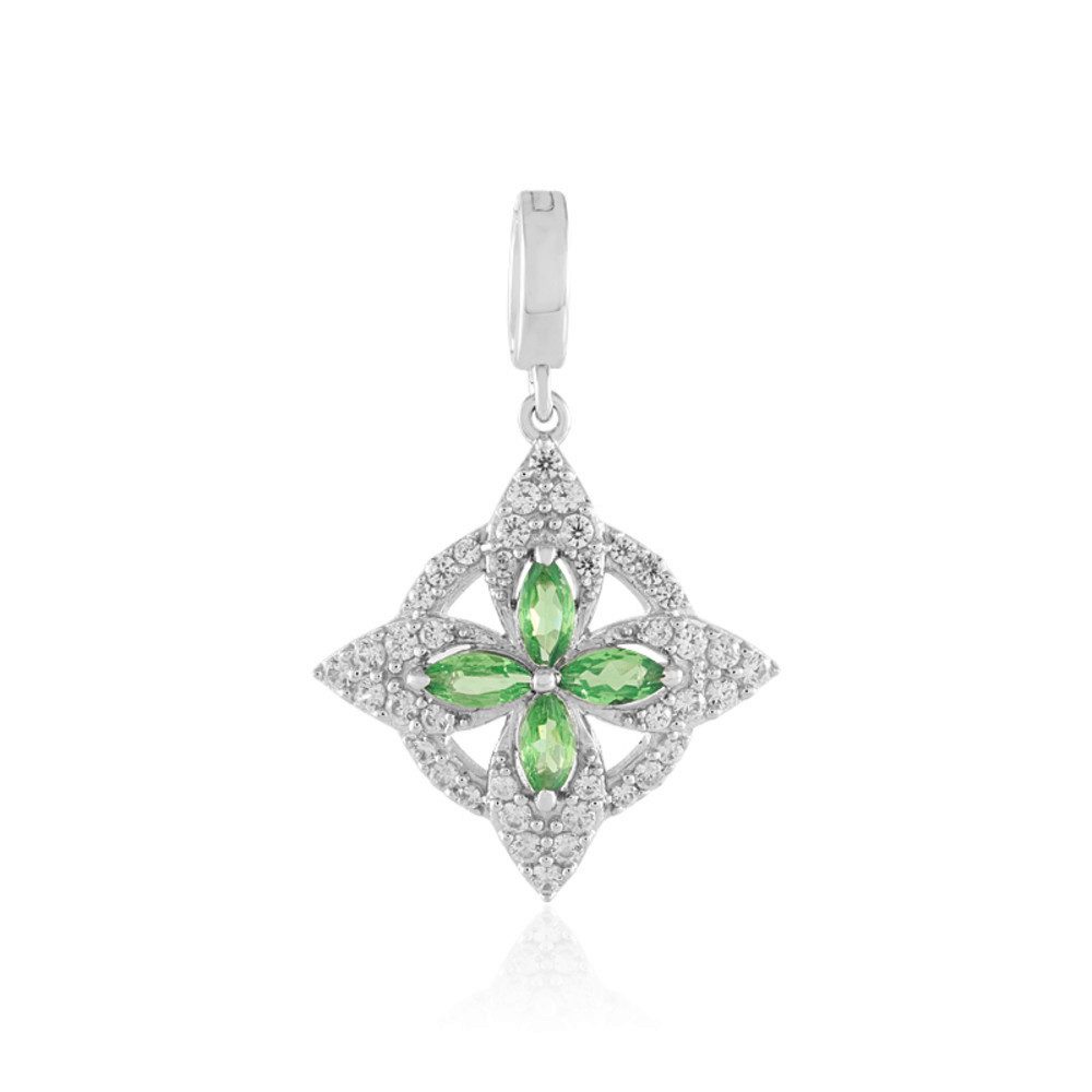 Entdecken Sie unseren Tansania-Tsavorit-Silberanhänger, ein wahrhaft unverwechselbares Schmuckstück. Für Erstkäufer bietet dieser Anhänger mit seinem lebendigen grünen Tsavorit aus Tansania, meisterhaft in funkelndem Silber gefasst, eine bezaubernde Einführung in edlen Edelsteinschmuck. Für Kenner zeigt sich in der perfekt gearbeiteten marquise Brillantschliff-Fassung die außergewöhnliche Schönheit dieses grünen Tsavorits. Eingebettet in einen floralen Stil und ergänzt durch funkelnde Zirkone aus Kambodscha, macht er jeden Look zu einem Highlight. Kombinieren Sie ihn mit einem eleganten Abendkleid oder veredeln Sie ein lässiges Business-Outfit – dieser Silberanhänger passt zu zahlreichen Anlässen, von festlichen Events bis zum Alltag.