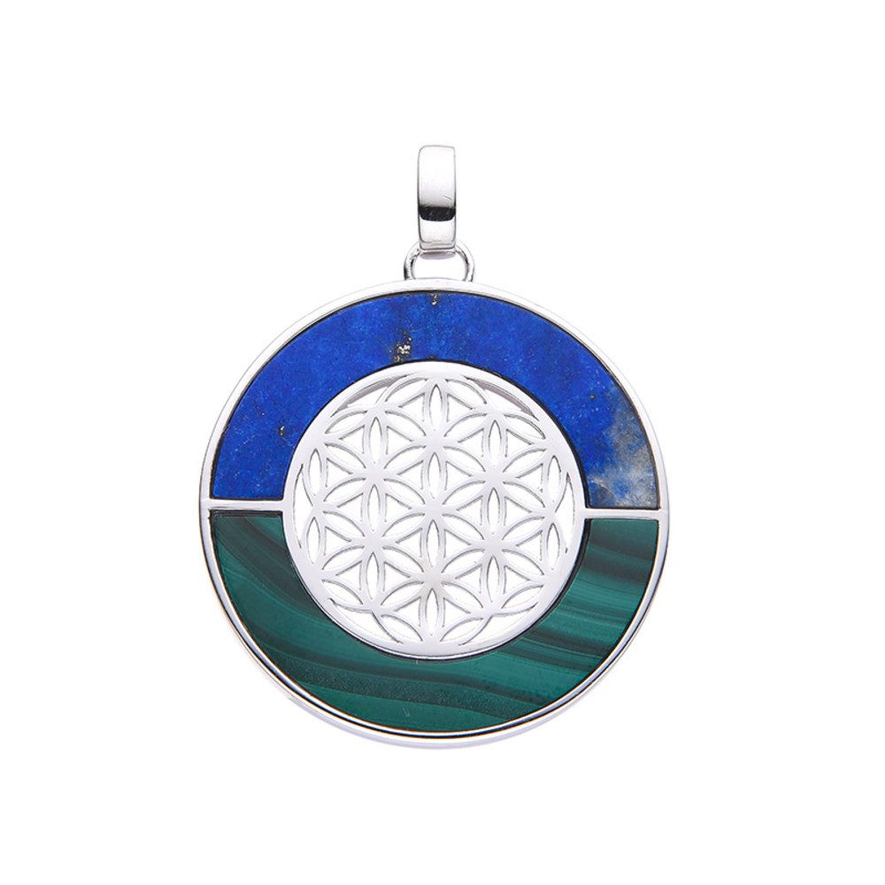 Dieser Edelstein-Silberanhänger vereint auf kunstvolle Weise hochwertigen Malachit aus der Demokratischen Republik Kongo und tiefblauen Lapislazuli aus Afghanistan. Die Edelsteine, im aufwändigen Fancy-Schliff verarbeitet, bieten mit 12,4 Karat Gesamtgewicht eine brilliante Farb- und Formvielfalt. Perfekt für Erstkäufer wie auch für erfahrene Schmuckliebhaber, fügt sich dieses Schmuckstück sowohl in eine elegante Abendgarderobe als auch in eine stilvolle Freizeitmode nahtlos ein. Tragen Sie es zu besonderen Anlässen oder als tägliches Highlight – es wertet jedes Outfit mit seiner lebendigen grünen und blauen Farbgebung und der kraftvollen Symbolik der geometrischen Muster auf.