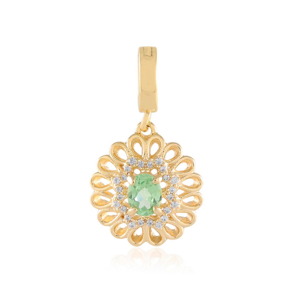 Unser Tansania-Tsavorit-Silberanhänger ist ein faszinierendes Schmuckstück, ideal für Erstkäufer sowie erfahrene Edelsteinliebhaber. Der intensive, grüne Tsavorit im ovalen Brillantschliff ist kunstvoll in hochwertigem Silber gefasst und von funkelnden Zirkonen umgeben. Dieses meisterhaft gearbeitete Accessoire passt perfekt zu eleganten Abendoutfits, Businesskleidung oder casual Looks und ist somit vielseitig einsetzbar für besondere Anlässe oder den Alltag.