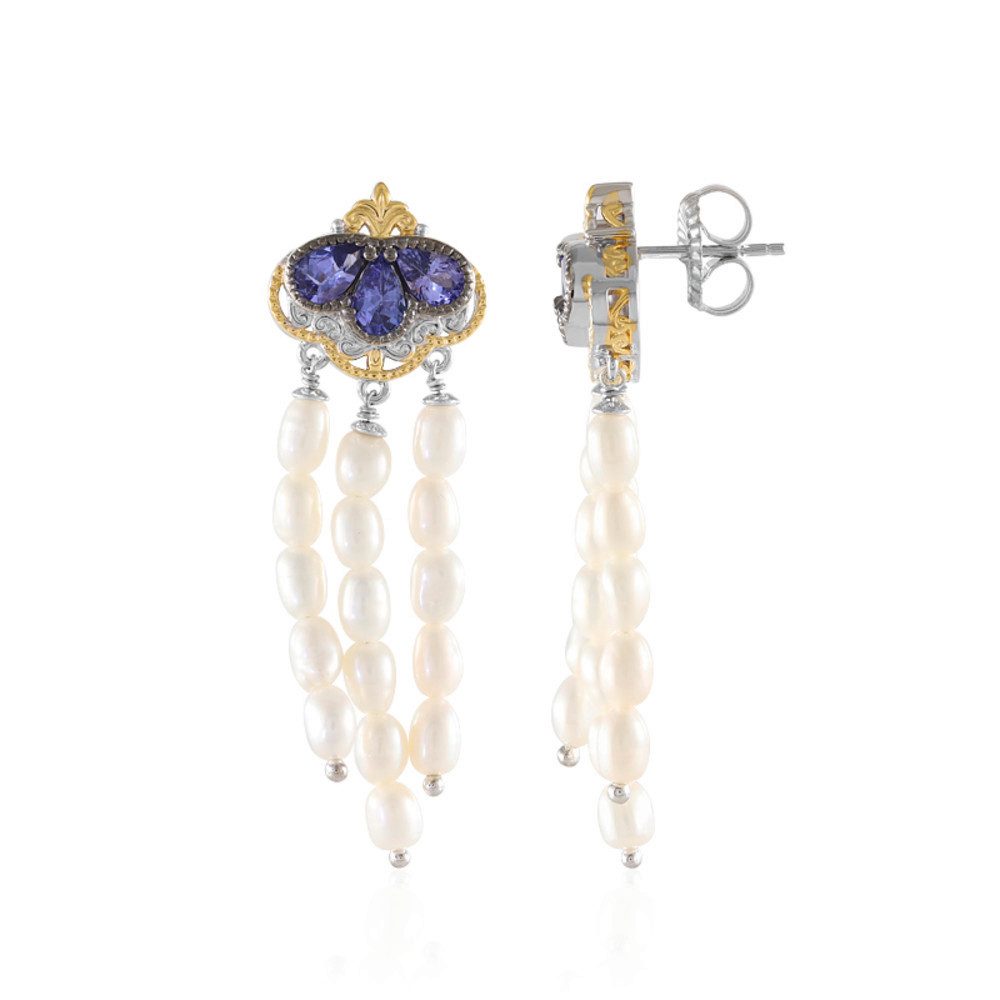 Diese Edelstein-Silberohrringe aus der Kollektion Gems en Vogue sind eine perfekte Wahl für alle, die Schmuck mit höchster Qualität und feiner Detailarbeit schätzen. Die Hauptattraktion bilden die sechs tropfenförmig facettierten Tansanite aus Tansania, die kunstvoll von 925er Sterlingsilber gefasst sind und einen bezaubernden violetten Glanz entfalten. Ergänzt wird das Design durch 32 ovale weiße chinesische Süßwasserzuchtperlen, die dem Ohrschmuck eine elegante Leichtigkeit verleihen. Ob zu einem edlen Abendkleid oder stilvoller Businesskleidung – diese Ohrringe verleihen jedem Look einen Hauch von Luxus und Raffinesse. Für Kenner sind die Kombination aus fein geschliffenen Tansaniten und hochwertigen Perlen ein außergewöhnliches Beispiel für meisterhafte Schmuckkunst.