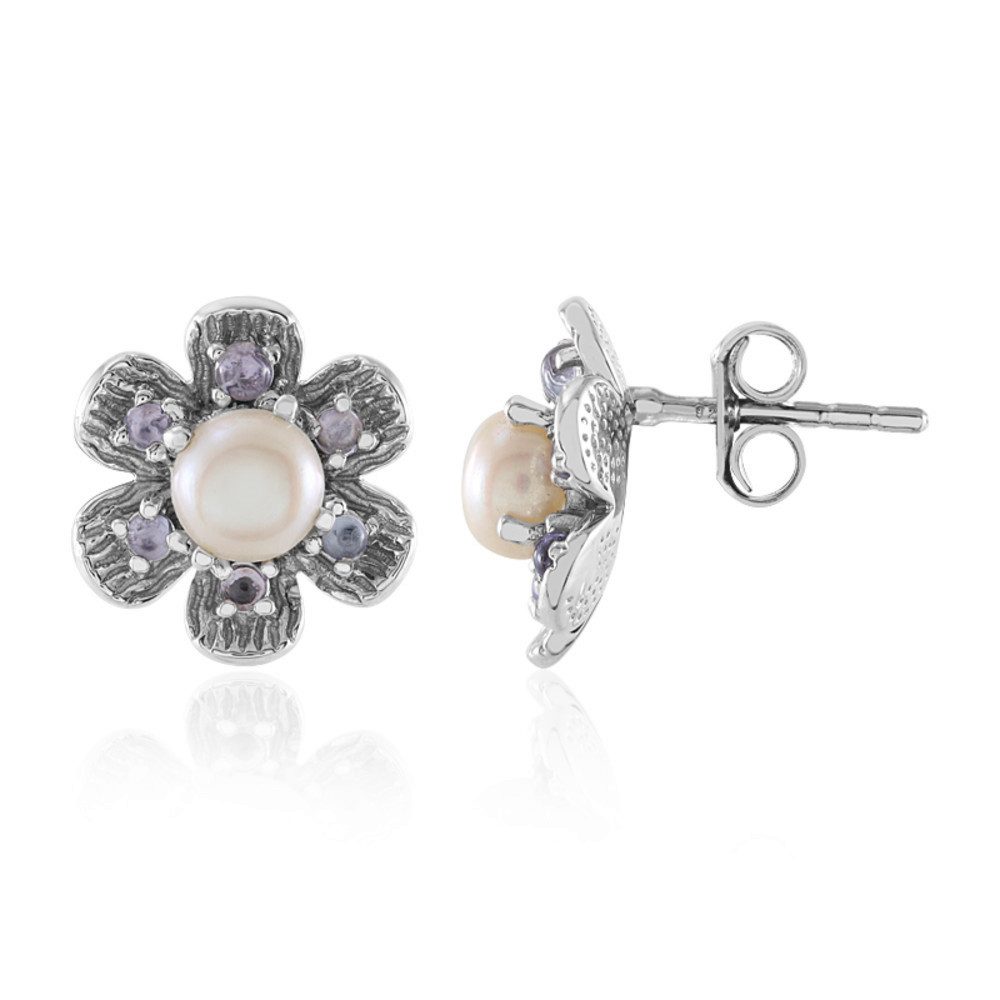 Diese edlen weißen Süßwasserzuchtperlen-Silberohrringe sind ein Highlight für Einsteiger und Kenner gleichermaßen. Die sorgfältig ausgewählten, rund geschliffenen Perlen aus China werden von 12 funkelnden Tansaniten aus Tansania in einem zauberhaften floralen 925er Sterlingsilber-Design eingefasst. Ideal für elegante Abendkleider, das Business-Outfit oder festliche Anlässe setzen diese Ohrringe feminine Akzente und unterstreichen zeitlose Schönheit mit einem Hauch von Exklusivität.