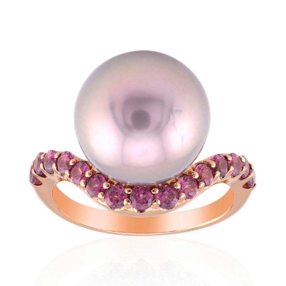 Der purpurfarbene Ming-Perlen-Silberring (Annette) begrüßt Sie mit einer prachtvollen 11 mm großen chinesischen Ming-Perle, die in einem intensiven Violett schimmert. Meisterhaft eingefasst von 15 strahlenden brasilianischen Rhodolithen mit rundem Schliff und insgesamt 0,69 ct, perfektioniert der rosévergoldete 925er Sterlingsilberring dieses elegante Schmuckstück. Ob für Erstkäufer oder erfahrene Schmuckliebhaber: Der harmonische Farbkontrast und die sorgfältige Verarbeitung machen diesen Ring zu einem perfekten Begleiter für festliche Anlässe oder als besonderes Highlight im Alltag. Kombinieren Sie ihn idealerweise mit einem purpurfarbenen Kleid oder edler Abendgarderobe – ein Statement für Stil und Raffinesse.